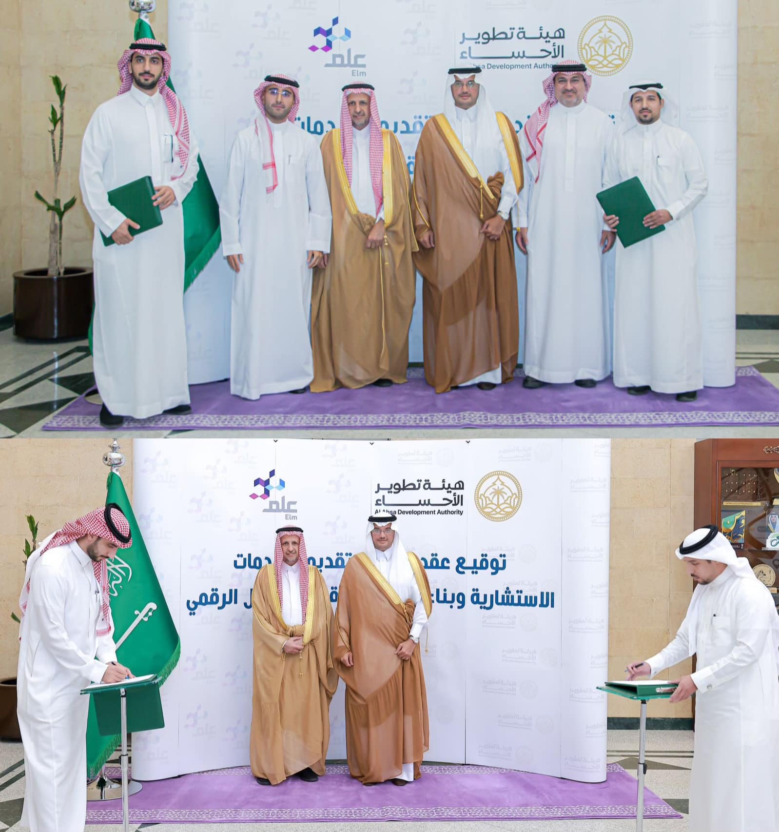رعى صاحب السمو الملكي الأمير سعود بن طلال بن بدر محافظ الأحساء الرئيس التنفيذي المكلف لهيئةتطوير الأحساء بمقر المحافظة اليوم “ الأربعاء “ ، توقيع “عقد شراكة بين هيئة تطوير الأحساء وشركةعِلم؛ وذلك بحضور الرئيس التنفيذي لشركة عِلم الدكتور عبدالرحمن بن سعد الجضعي.