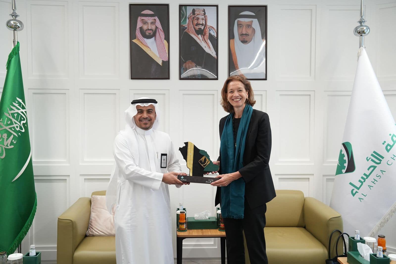ومن جهته رحّب الدكتور إبراهيم بسعادة السفيرة والوفد المرافق لها، مُعبرًا عن شكره وتقديره لهذه الزيارة، منوّهًا بما تتمتّع به الأحساء منمقومات وميز تنافسية وفرص واعدة، مشيرًا إلى دور رؤية 2030 في دعم التعاون وتعزيز برامج الشراكات الاستثمارية والتجارية وتوسيعالأسواق.