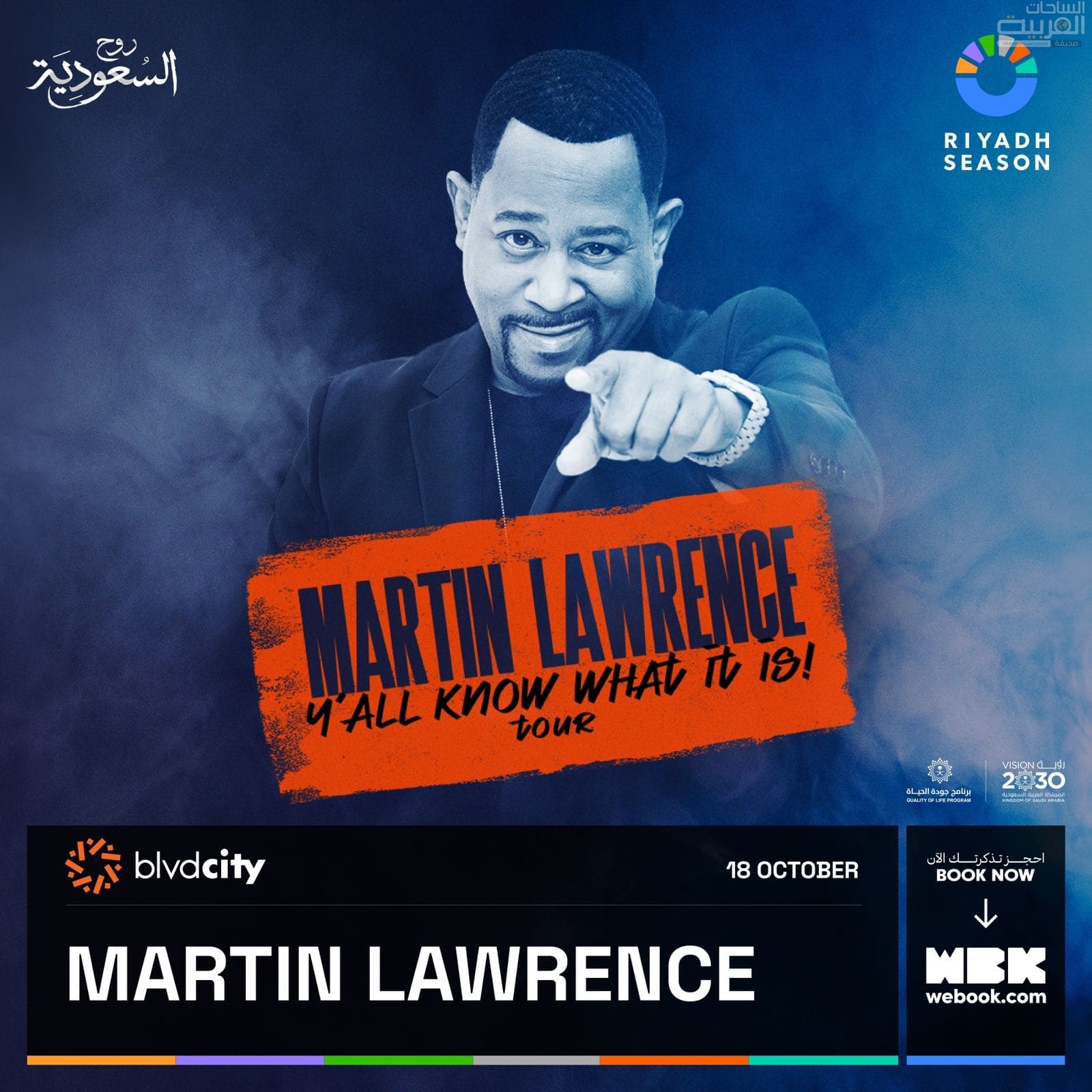 أعلن “موسم الرياض” اليوم عن طرح تذاكر فعالية جديدة ضمن فعاليات الموسم، حيث سيكون عشاق الكوميديا على موعد مع الممثل الكوميدي الشهير مارتن لورانس، الذي سيقدم عرضًا ترفيهيًا على مسرح بكر الشدي في بوليفارد سيتي، في الـ 18 من أكتوبر المقبل.