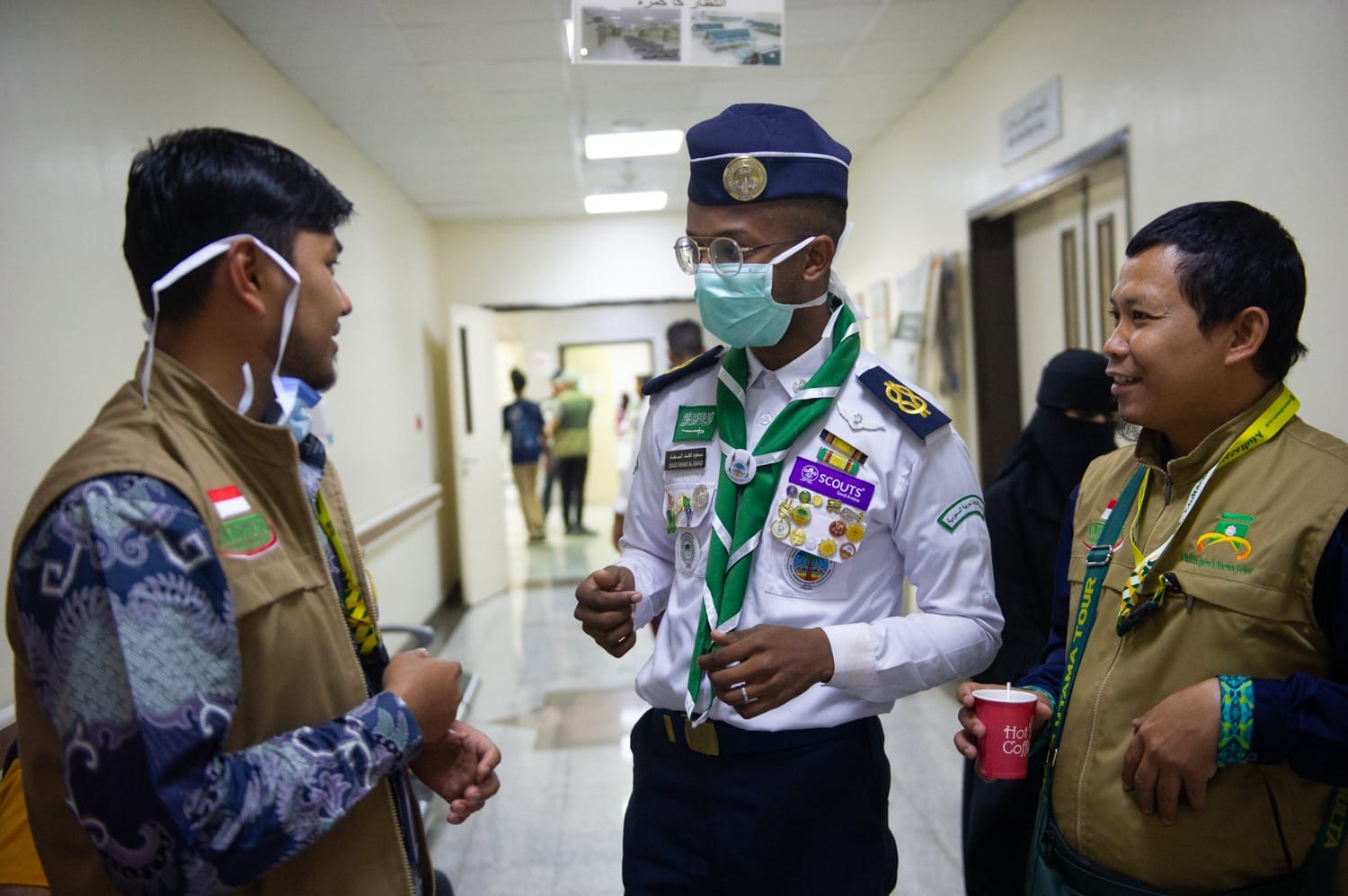 باشرت جمعية الكشافة العربية السعودية من خلال معسكرات الخدمة العامة التي تُقيمها في مكة المكرمة والمشاعر المقدسة مساندتها لأطقم العمل في وزارة الصحة بالمستشفيات والمراكز الصحية بمكة المكرمة والمشاعر المقدسة، والمشاركة في تنظيم دخول الحجاج والمراجعين وتوجيههم إلى العيادات والمختبرات الطبية والصيدليات وإرشادهم إلى وجهاتهم بعد مغادرتهم المستشفيات والمراكز الصحية.