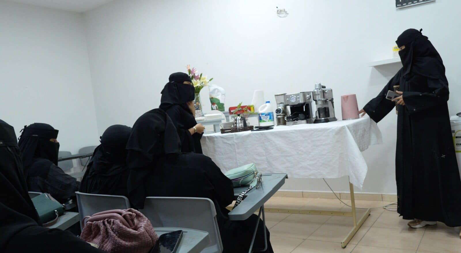 وأضاف البوسيف بأن البرنامج أنطلق بالتعاون أحد المعاهد المتخصصة في تدريب الفتيات من أجل منحهن مزيدا من الخصوصية اثناء التدريب، وهدف إلى تدريب المستفيدات عمليا على طرق تحضير القهوة بمختلف أنواعها الساخنة والباردة من أجل اتقان العمل بهدف تمكينهن من المهارات المكتسبة وتشجيعهن على إطلاق المشاريع الريادية الصغيرة الخاصة بهن أو الحصول على وظائف في ذات المجال.