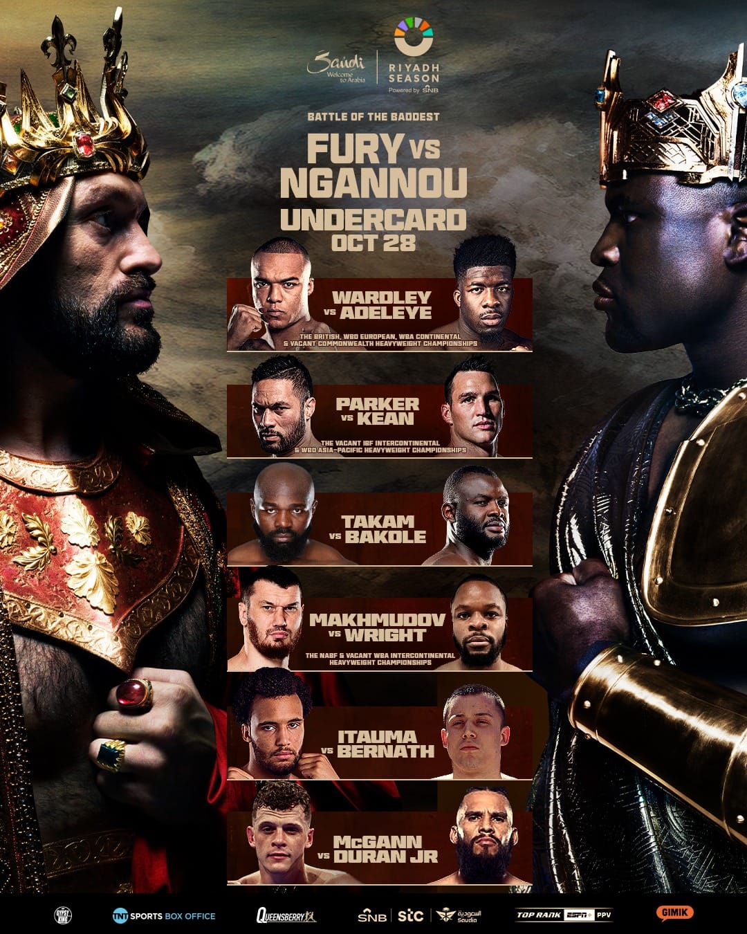 يسرنا أن نعلن لكم عن تأكيد نزال الملاكمة للوزن الثقيل بين الملاكم فابيو واردلي وديفيد اديلي التي تستضيفها العاصمة السعودية، الرياض، يوم 28 أكتوبر، والتي يدافع فيها واردلي عن لقبه في بطولة بريطانيا للملاكمة في الوزن الثقيل. وسيتولى مجلس مراقبة الملاكمة البريطاني (BBoC) تنظيم الحدث من البداية إلى النهاية.