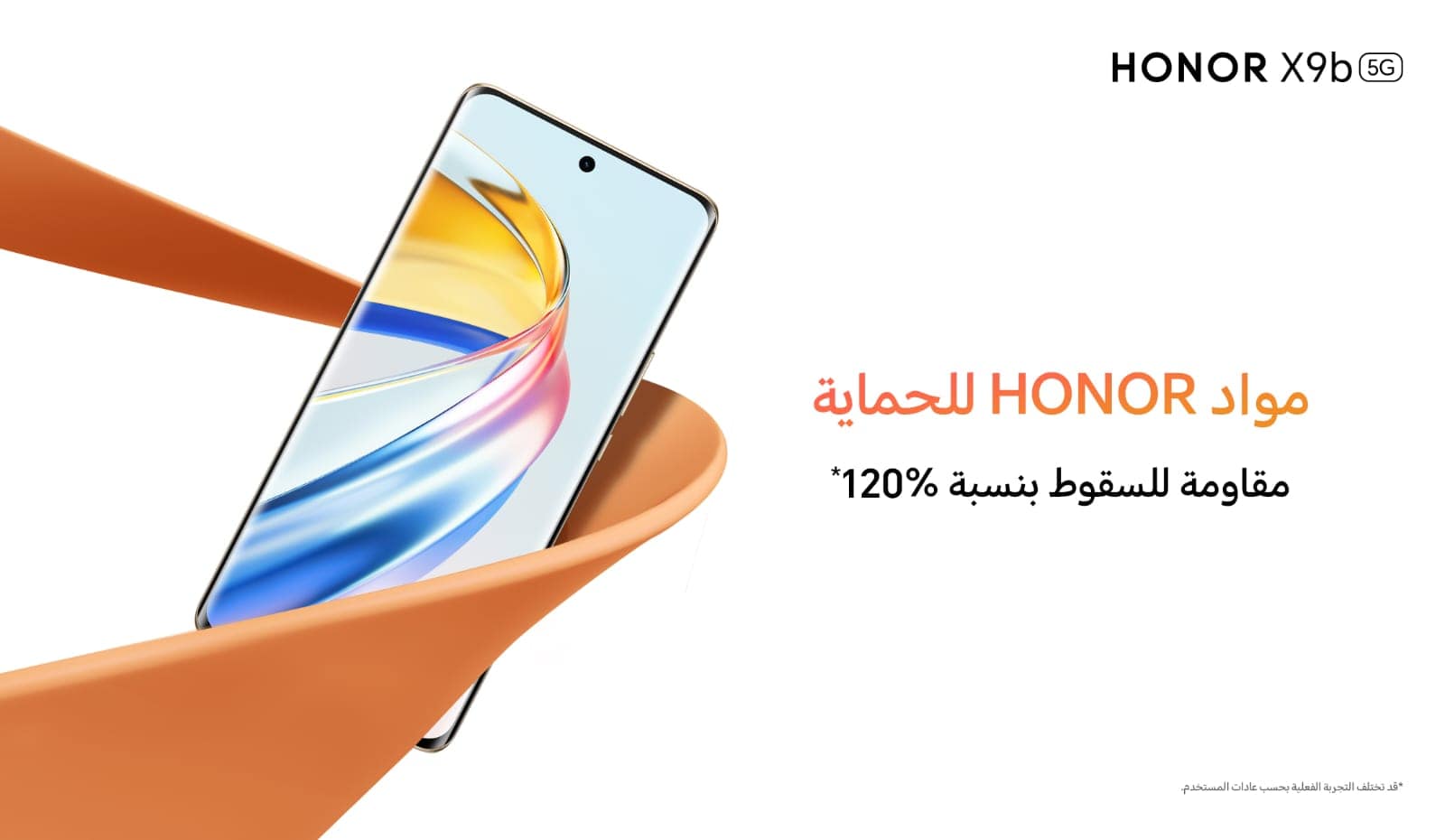 تصميم الهاتف الذي يتمحور حول الإنسان يعني الاستعداد لسيناريوهات غير مرغوبة مثل إسقاط الهاتف من خلال أحدث الابتكارات، وتظهر علامة HONOR بشكل واضح هذه الرؤية من خلال هاتفها الجديد كلياً HONOR X9b 5G. تم تجهيز هاتف HONOR X9b 5G بشاشة متينة مقاومة للسقوط من HONOR، وذلك بهدف ضمان القوة والمتانة. يتميز هاتف HONOR X9b 5G بتضمنه على مادة مبتكرة تشكل هيكلاً ممتصاً للصدمات حول الهاتف، ويوفر مقاومة مذهلة للسقوط من ارتفاع يصل إلى 1.5 متر[1] ويوفر حماية 360 درجة لجميع الأوجه الستة والأركان الأربعة للهاتف، حتى لو سقط على سطح صلب[2].