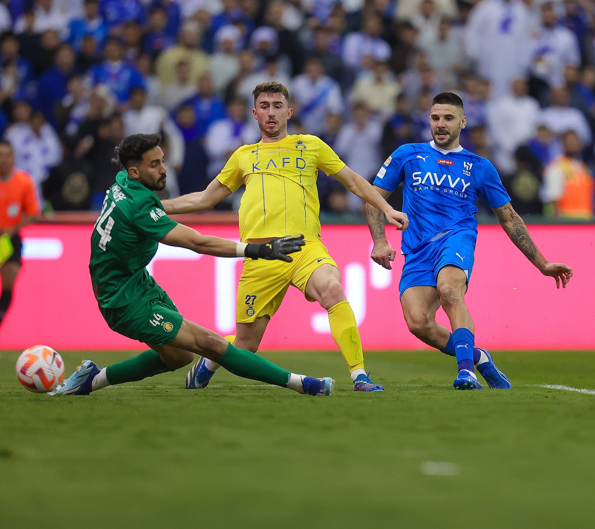 وعاد الهلال برأسية ثانية قوية، ليضيف الهدف الثاني عبر ميتروفيتش في الدقيقة 89، بعد كرة ثابتة متقنة من الدوسري.