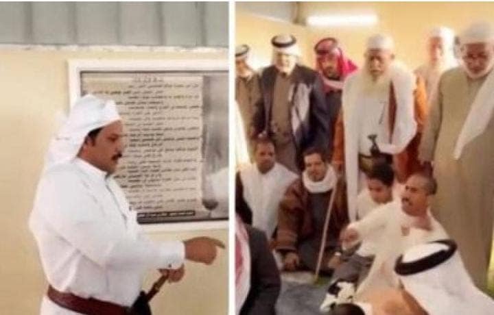 وقام المتواجدين باحتضان نجل القتيل بعد موافقته على العفو، وسط تهليل وتكبير من الرجال، ورفع الراية البيضاء لاولد المقتول وقبيلة ال صليع مذكر يام