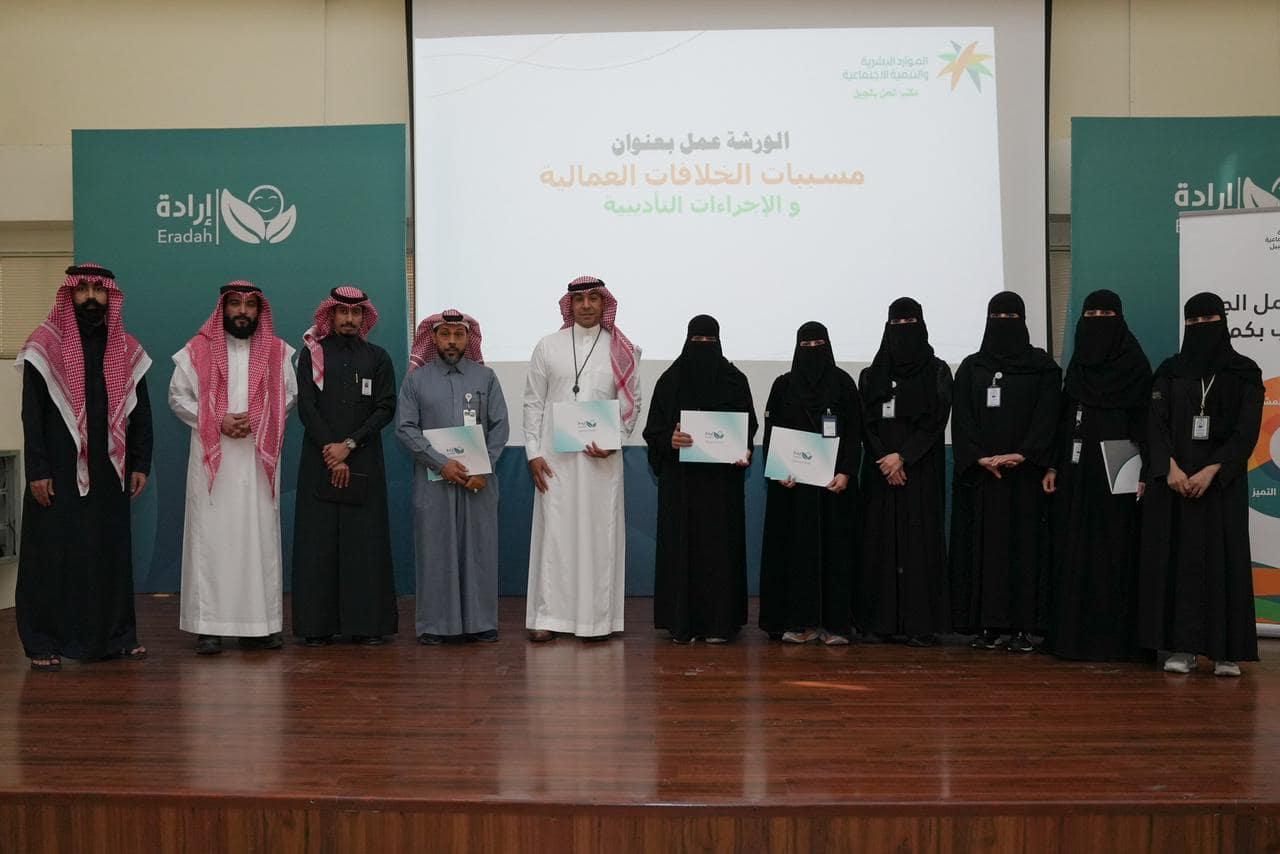 وتضمنت الورشة عدة محاور ومنها مسببات الخلافات العمالية وواجبات العمال وقواعد التأديب في بيئة العمل والاجراءات التأديبية التي يجوز لصاحب العمل توقيعها على العامل من انذار أو وغرامة وعقود العمل والاجازات.
