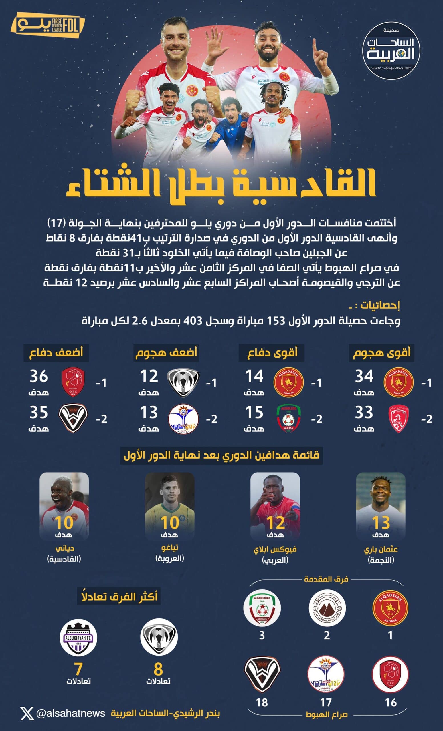 صحيفة الساحات العربية تقدم احصائية للدوري بعد نهاية الدور الاول