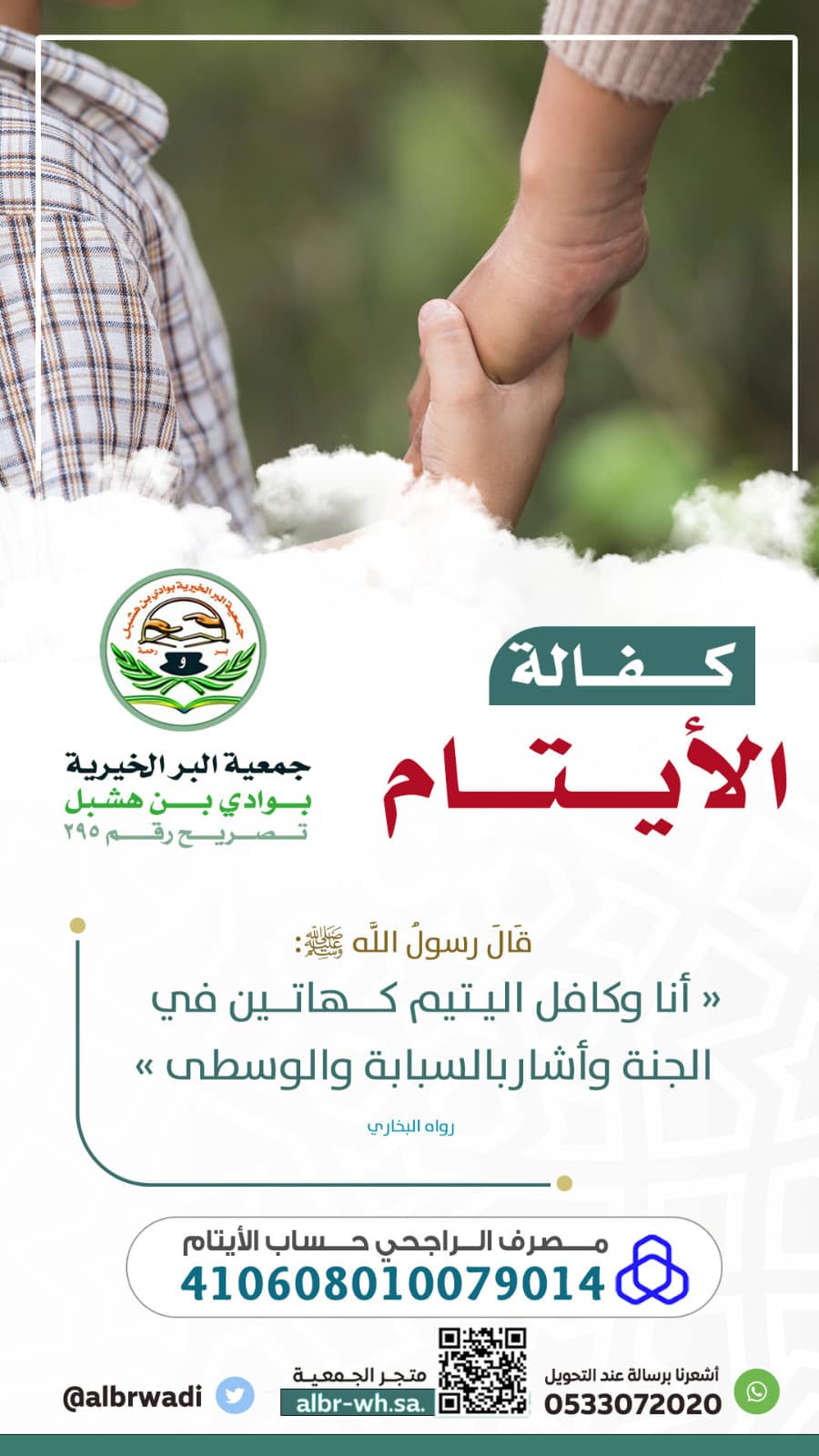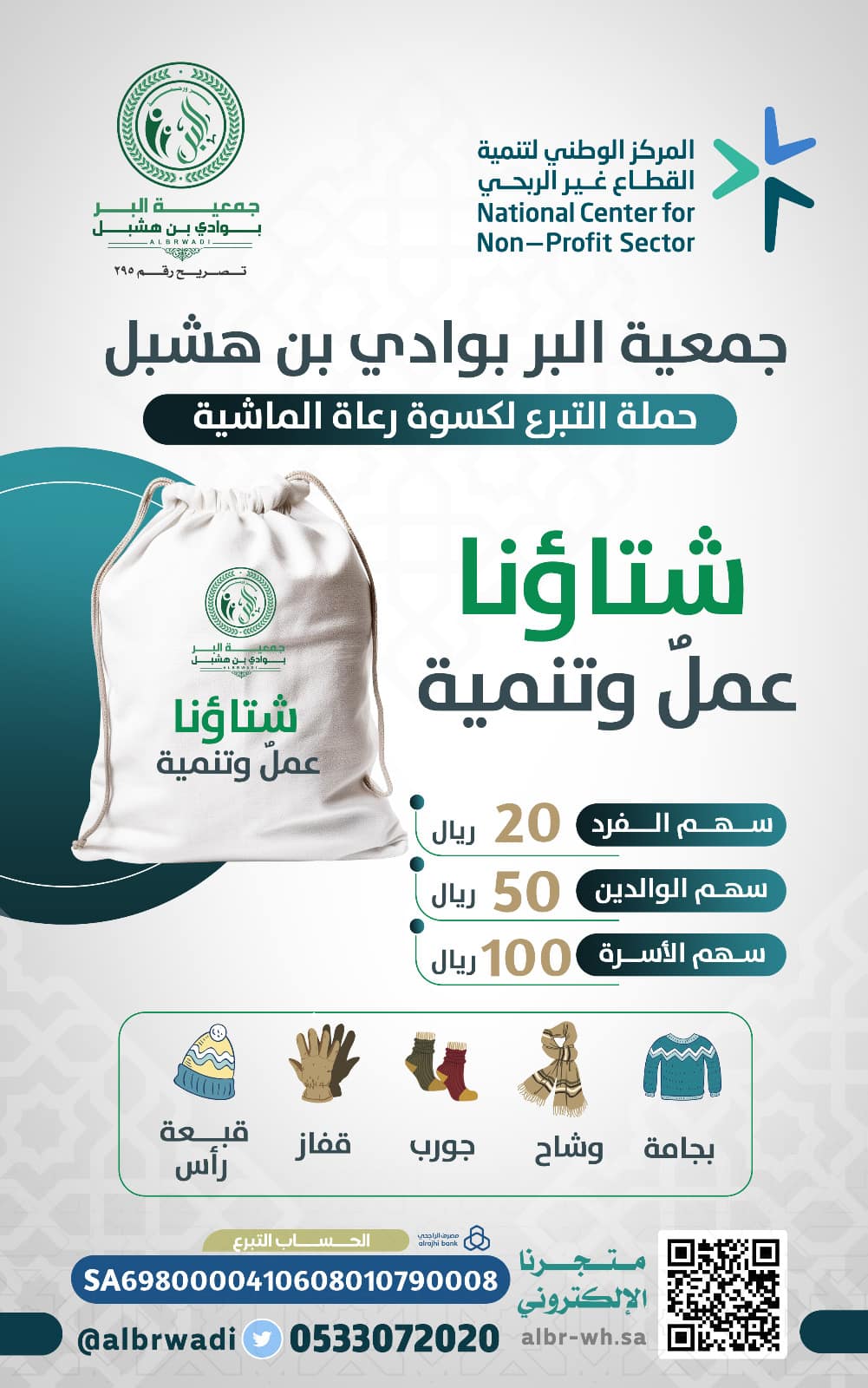 وقد نوه الأستاذ سعد بن سنيدان المدير التنفيذي للجمعيه ان جمعيه البر بوادي بن هشبل تاسست عام ١٤٢٦ وتعنا بتقديم الدعم والرعايه للمحتاجين من الفقراء والمساكين والأرامل والأيتام والمطلقات وتوفر لهم المساعده والدعم المادي والعيني