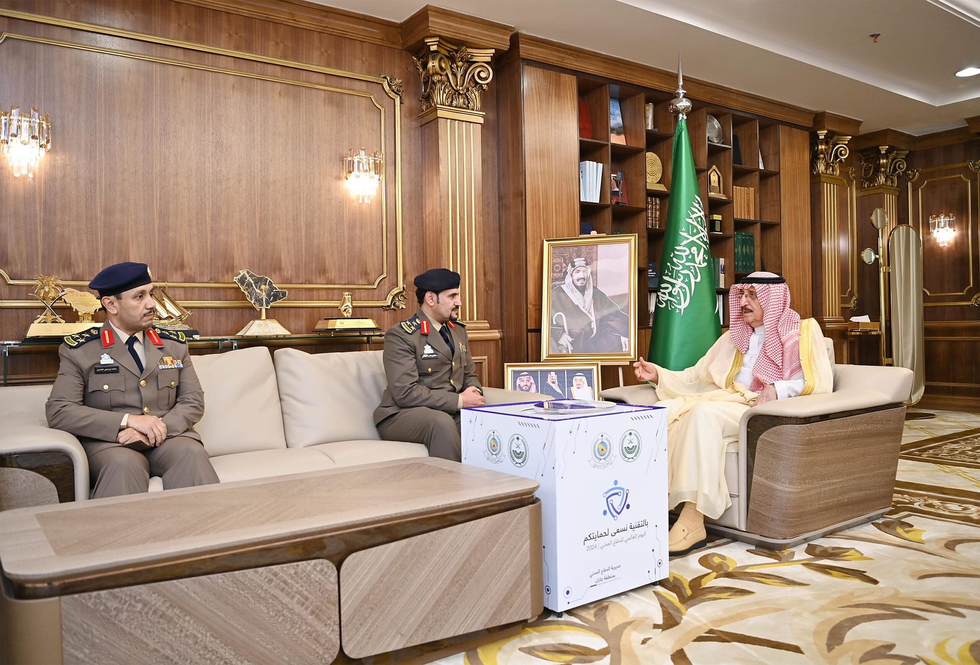 دشن صاحب السمو الملكي الأمير محمد بن ناصر بن عبدالعزيز أمير منطقة جازان بمكتبه اليوم، فعاليات اليوم العالمي للدفاع المدني تحت شعار “بالتقنية نسعى لحمايتكم”، بحضور مدير الدفاع المدني بالمنطقة العميد سلطان القحطاني وعدد من قيادات الدفاع المدني بجازان.