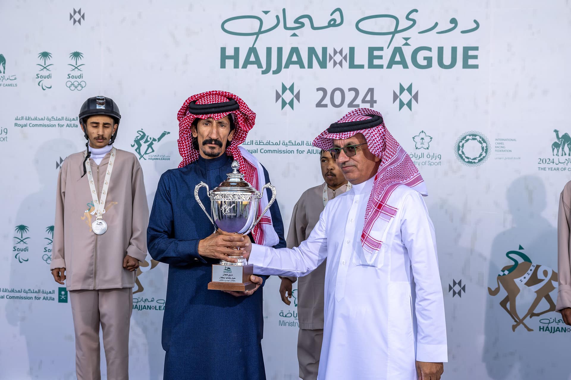 تَوَّجَ محمد بن حمّاد البلوي نائب رئيس مجلس إدارة الاتحاد السعودي للهجن الفائزين في نهائي دوري هجان بنسخته الثالثة والذي أقيم اليوم على ميدان الجنادرية للهجن بتنظيم من الاتحاد السعودي للهجن.