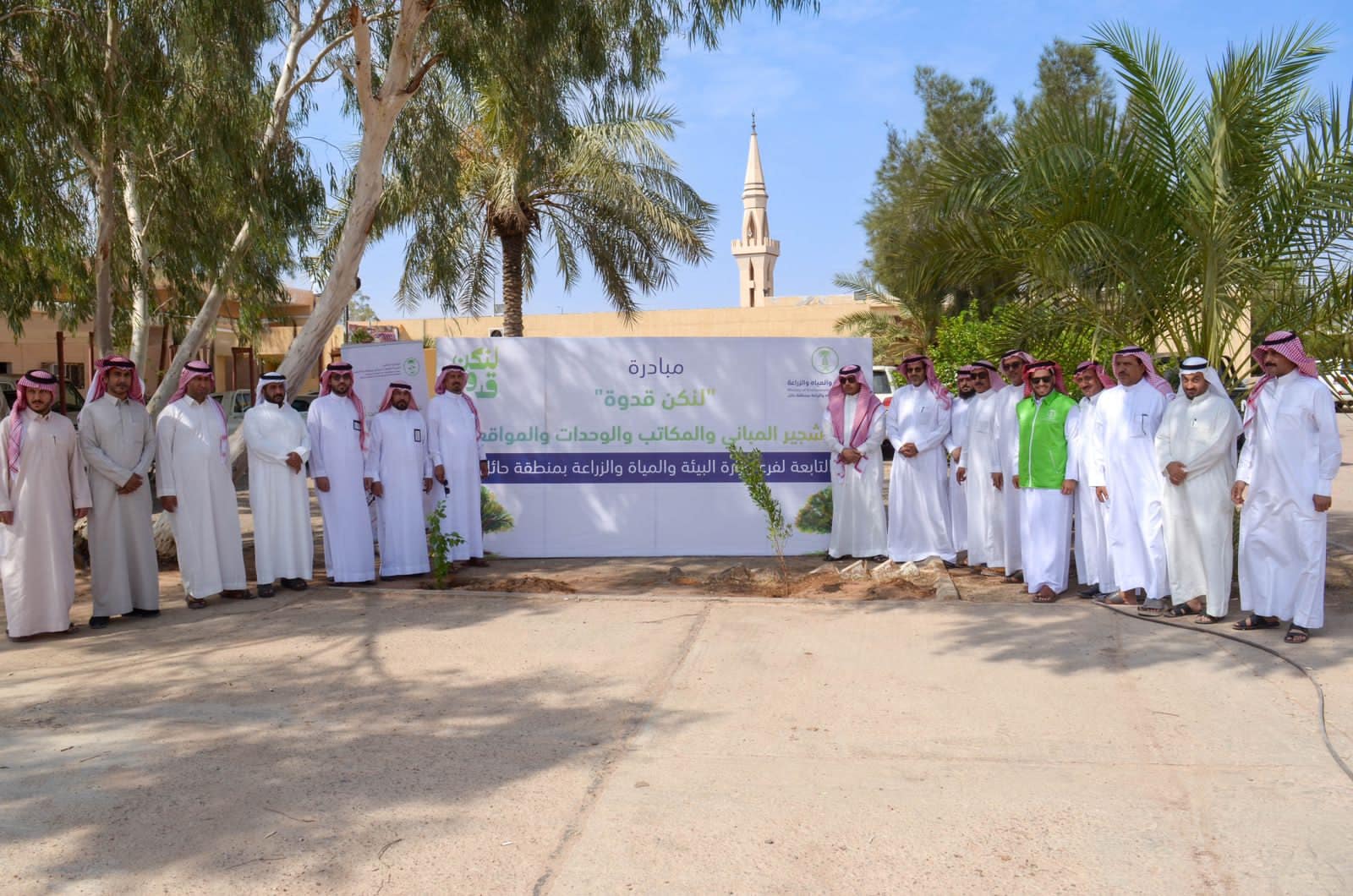 أطلق مدير عام فرع وزارة البيئة والمياه والزراعة بمنطقة حائل فهد بن معيض الحسني , اليوم الاثنين حملة “لنكن قدوه” لاستزراع مقرات الوزارةبالمنطقة والمكاتب والوحدات واسواق النفع العام وحقول المياه ومحطات المعالجة . حيث قام مدير عام الفرع بتدشين الحملة بتشجير مكتب الوزارة بحائل بحضور المختصين من ادارة البيئة بالفرع ومدير مكتب فرع الوزارة بحائل ومدير مركز تنمية الغطاء النباتي ومكافحة التصحر بمنطقة حائل
