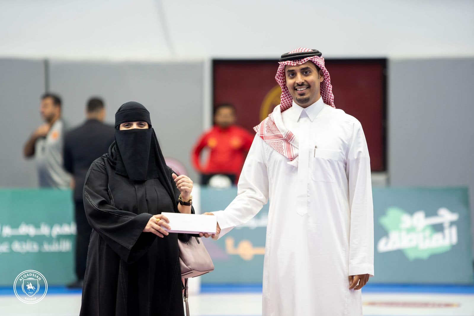 وفي نهاية الفعالية سلم المشرف العام على موسم القادسية الرمضاني الاستاذ فهد الصيعري الجائزة المخصصة للفائزة في هذا التحدي .