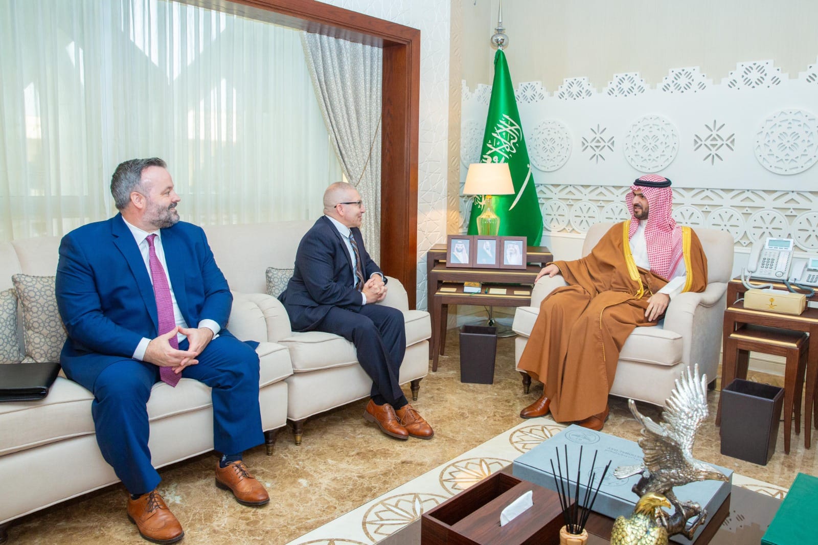 استقبل صاحب السمو الملكي الأمير سعود بن بندر بن عبدالعزيز نائب أمير المنطقة الشرقية في مكتب سموه بديوان الإمارة اليوم الأربعاء السيد جيمس سيندل القنصل العام للولايات المتحدة الامريكية بالظهران.