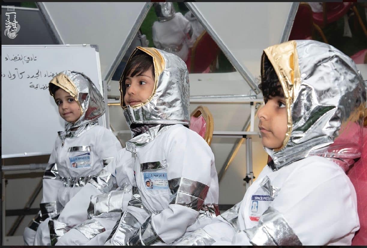 وبذلك تم تخريج اول دفعه ومنح كل مشارك شهادة حضور ولباس رواد الفضاء مجاناً