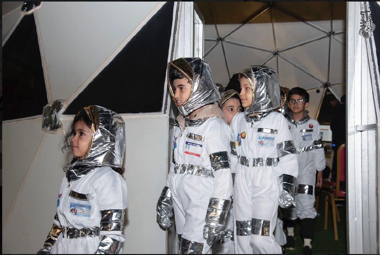 وفي نهاية المحاضرة تم اتاحة الفرصة للأطفال لطرح الأسئلة ومن هذه الأسئلة كم درجة الحرارة في الفضاء؟ وهل يستطيعون الخروج من المركبة؟ وكيف يتم التواصل مع الأرض ؟ وتم الاجابة على جميع أسألتهم