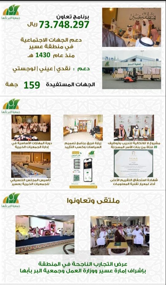 جمعية البر بأبها رائدة العمل الخيري في عسير