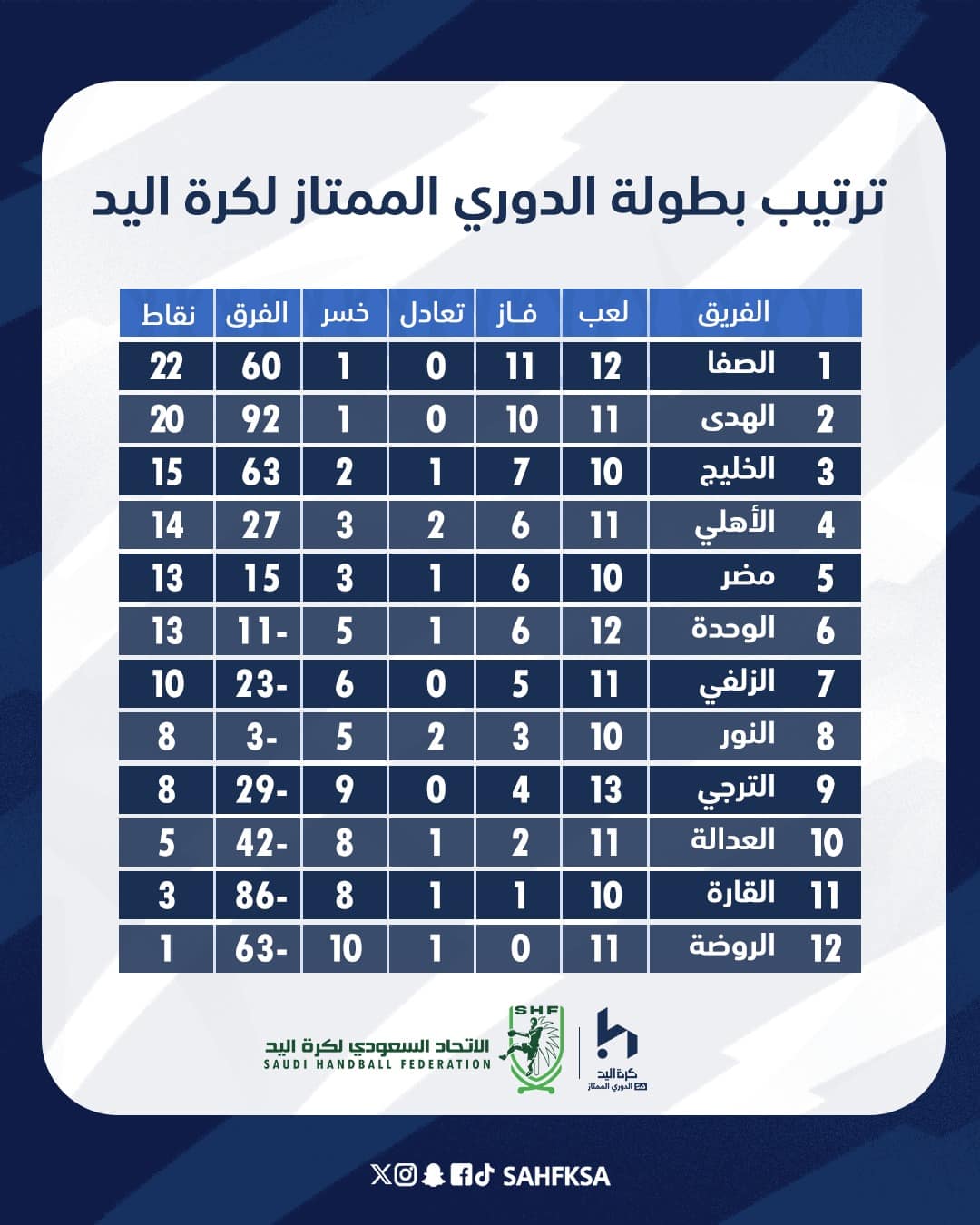 واصل الصفا تصدره لترتيب بطولة الدوري الممتاز لكرة اليد للكبار للموسم الرياضي 2023-2024م، وذلك بعد فوزه على الأهلي (28-24) في قمة مبارايات الجولة الثالثة عشرة، ليرفع رصيده إلى 22 نقطة على قمة الترتيب.