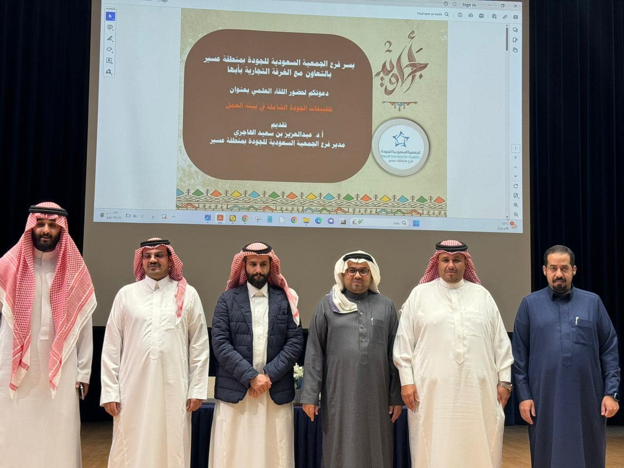 ضمن مبادرة أجاويد 2 قدم مدير فرع الجمعية السعودية للجودة بمنطقة عسير الاستاذ الدكتور عبدالعزيز سعيد الهاجري لقاء علمي حول تطبيقات الجودة الشاملة في بيئة العمل تناول من خلالها أربع مجالات شملت بيئة العمل التنظيمية، وبيئة العمل البشرية، وبيئة العمل التقنية، وبيئة العمل المادية. وكيف يتم تطبيق تلك المجالات على بيئة العمل للخروج بافضل منتج