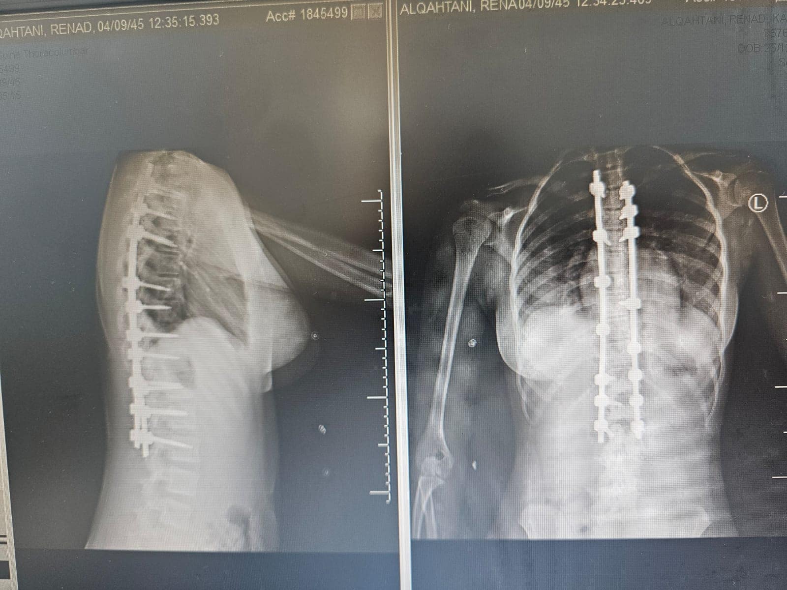 وأوضح تجمع عسير الصحي نطاق بيشة ، أن الطفله حضرت إلى المستشفى وبعد عمل الأشعة والتحاليل اللازمة شٌخصت الحالة على أنها جنف شديد مع وجود صعوبة في أداء وممارسة الأنشطة اليومية ومشكلات في النوم نتيجة إصابتها بانحرافٍ شديدٍ في العمود الفقري (الجنف) منذ الطفوله