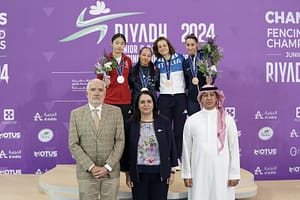 توج رئيس الاتحاد السعودي للمبارزة أحمد الصبان، الفائزات في اليوم الرابع من بطولة العالم للمبارزة للناشئين والشباب المقامة حاليا في صالة أرينا بجامعة الملك سعود في الرياض، بعد أن حصدت الفرنسية أوسيان فرانسيلوني الميدالية الذهبية، في منافسات سلاح الأبيه تحت 17 عام، عقب فوزها على الكندية جوليا يين التي نالت الميدالية الفضية، فيما ظفرت الامريكية ليهي ماتشولسكي بالميدالية البرونزية، والإيطالية أنتينا كورادوينو على البرونزية والمركز الثالث المكرر.