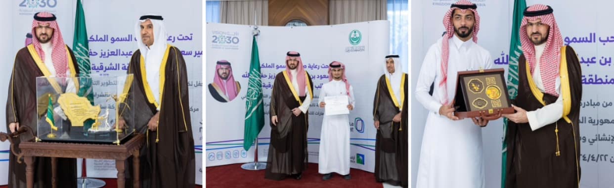 كرم صاحب السمو الملكي الأمير سعود بن بندر بن عبدالعزيز نائب أمير المنطقة الشرقية في ديوان الإمارة اليوم الإثنين الطلاب الخريجين من مبادرة التطوير التقني والمهني المبتكرة التي اطلقها مركز مهارات للتدريب الانشائي بالنعيرية بالتعاون مع شركة ساينوبك نانجينغ للهندسة والمقاولات بجمهورية الصين.
