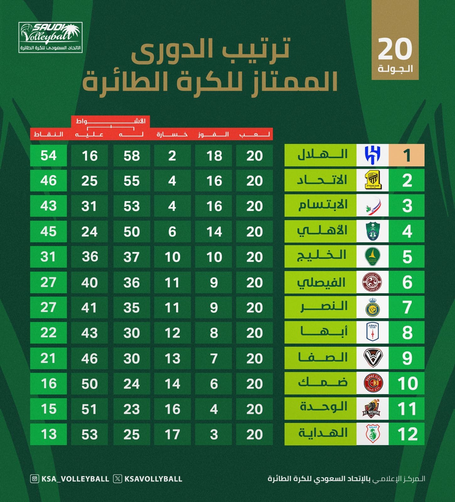 تنطلق غداً الاربعاء مباريات ( الجولة 21 ) ماقبل الاخيرة من الدوري الممتاز للكرة الطائرة باقامة ست مباريات ، وكان الهلال قد حسم لقب الدوري هذا الموسم بعد فوزه على الوحدة رافعاً رصيده 54 نقطة يليه الاتحاد في المركز الثاني 46 نقطة والابتسام في المركز الثالث 43 نقطة