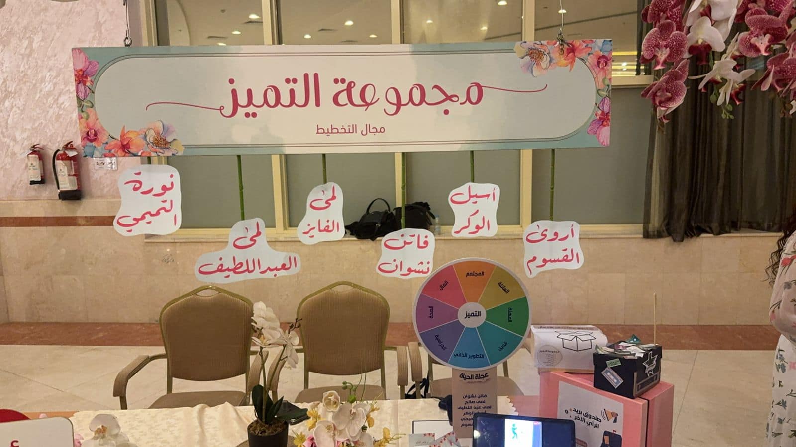 وبحضور عدد من الشخصيات الاعتبارية بالقصيم من أعضاء هيئة التدريس بجامعة القصيم و مكتب تعليم البدائع و ممثلي الجمعيات الخيرية ودور تحفيظ القرآن الكريم و الإعلاميات والصحفيات ومرافقي الطالبات الخريجات حيث وصل عدد الحضور أكثر من ١٠٠ زائر تجولوا بالمعرض الذي هو بمسمى” دندانة مسرعات القيادة” وسمي بذلك نظرا لأن الدندانة تحتوي على زرع في نهايته يصبح ورد مزهر وداعم كما القيادة تزرع داخل القائدة وتنمو داخلها؛