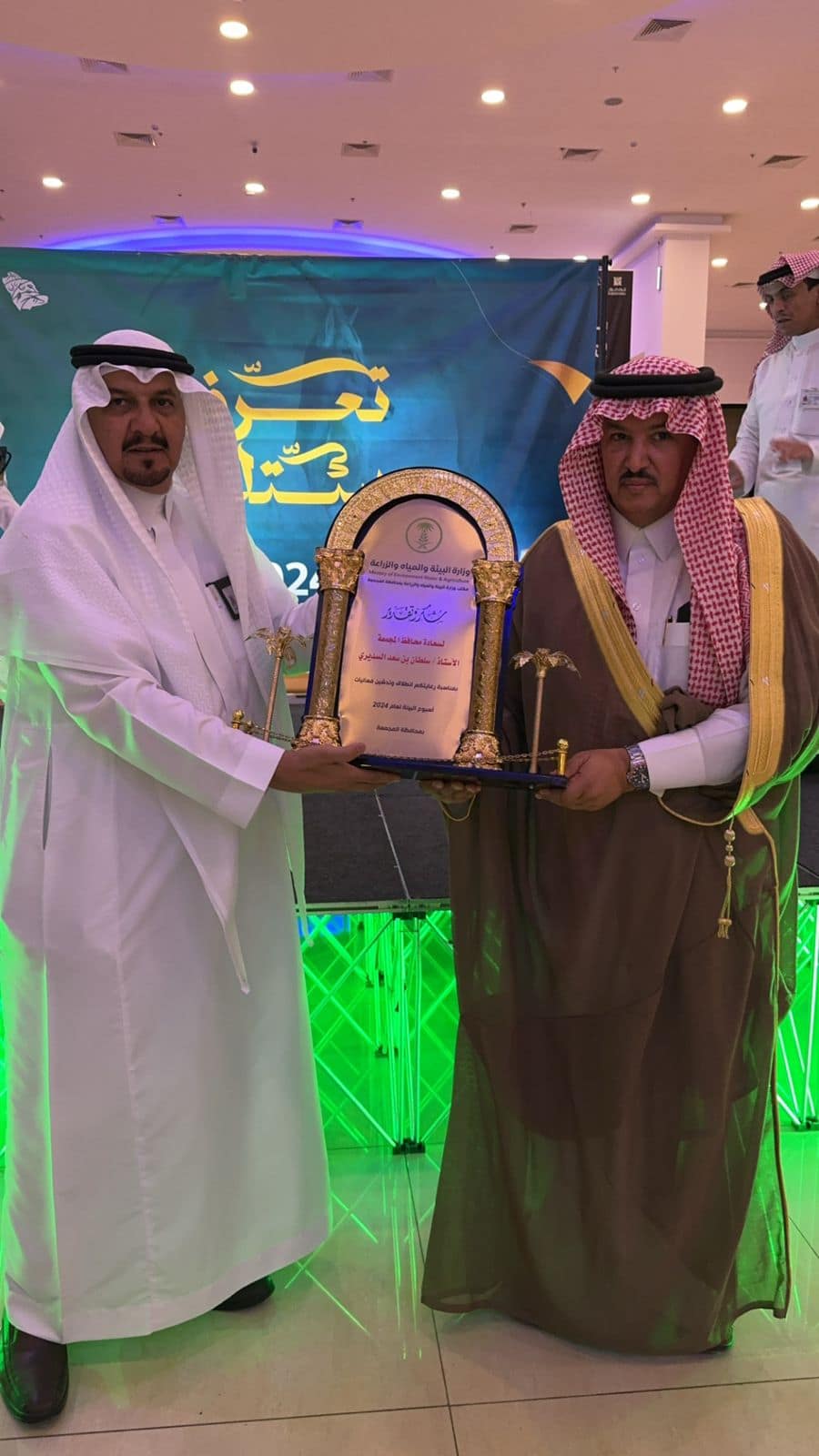 رعى محافظ المجمعة الاستاذ سلطان بن سعد السديري صباح اليوم الاحد حفل فرع وزارة البيئه والمياة والزراعة في المجمعة المقام في كرم مول بمناسبة اسبوع البيئة حيث قام سعادته بقص شريط المعرض وقام بجولة على الاركان واستمع لشرح عنها من القائمين عليها بعدها توجه سعادته وصحبه الكرم للحفل المصاحب حيث بدا بالقرآن الكريم بعدها القى الاستاذ غزاي العتيبي مدير فرع وزارة البيئه والمياة والزراعة كلمة بعدها قام سعادة الاستاذ سلطان بن سعد السديري بتكريم الرعاة والمشاركين في المعرض وقدم الاستاذ غزاي العتيبي درعا تذكاريا لسعادة المحافظ وفي نهاية الحفل التقط الحضور صوره تذكارية بهذه المناسبة
