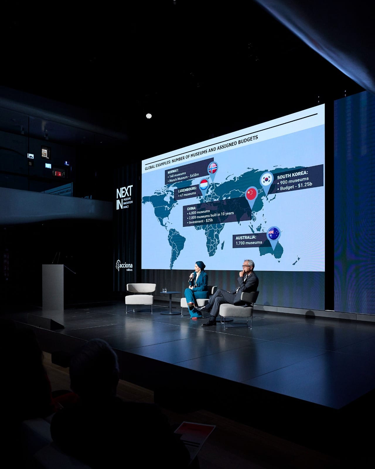 افتُتحت الدورة الأولى من قمة NEXT In برعاية خوسيه مانويل إنتريكاناليس، الرئيس والمدير التنفيذي لشركة ACCIONA، الذي سلط الضوء على أهمية الثقافة بوجه عام وعلم المتاحف بوجه خاص، واصفاً إياهما بأنهما “عنصر أساسي للتطور الإنساني” و”وسيلة لبناء مجتمع أكثر استدامة، ازدهاراً، توازناً، مرونة، وتعاطفاً.” مقتبس رئيس ACCIONA بالكاتب الفرنسي أندريه مالرو، معتبراً أن “الثقافة ترفع من شأن الإنسان عن مجرد كونه صدفة في الكون.”