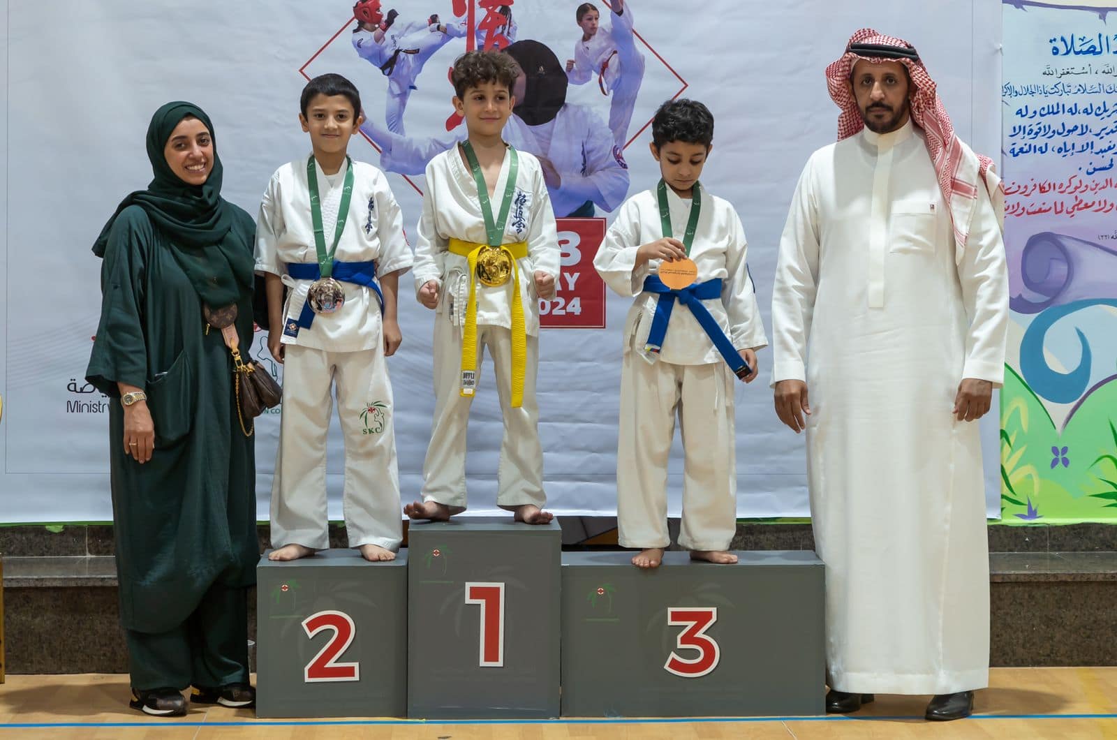 وفي فئة 8 سنوات تحت 30 انتزع محمد الخلف المركز الاول ، وفي فئة 10-11 سنة حققت المركز الاول آسية احمد ، وفي فئة 12 -13 سنة الأول انتزعت المركز الاول حبيبة زهير ، وفي فئة 14 سنة تحت 50 كان المركز الأول من نصيب تاليا ماجد وفي فئة 14 سنة فوق 50 حققت المركز الأول حور العبادي ، وفي فئة 16 سنة طار المركز الأول إلى ود فيصل و في فئة السيدات الأولى هي حبيبة منير . وفي نهاية المنافسات توج رئيس اللجنة السعودية للكيوكوشن عبدالرحيم الشهري وعضو مجلس الادارة الدكتورة ساره مختار الفائزين بالمراكز الثلاث الاولى لكل فئه وبعدها التقطت الصور التذكارية .