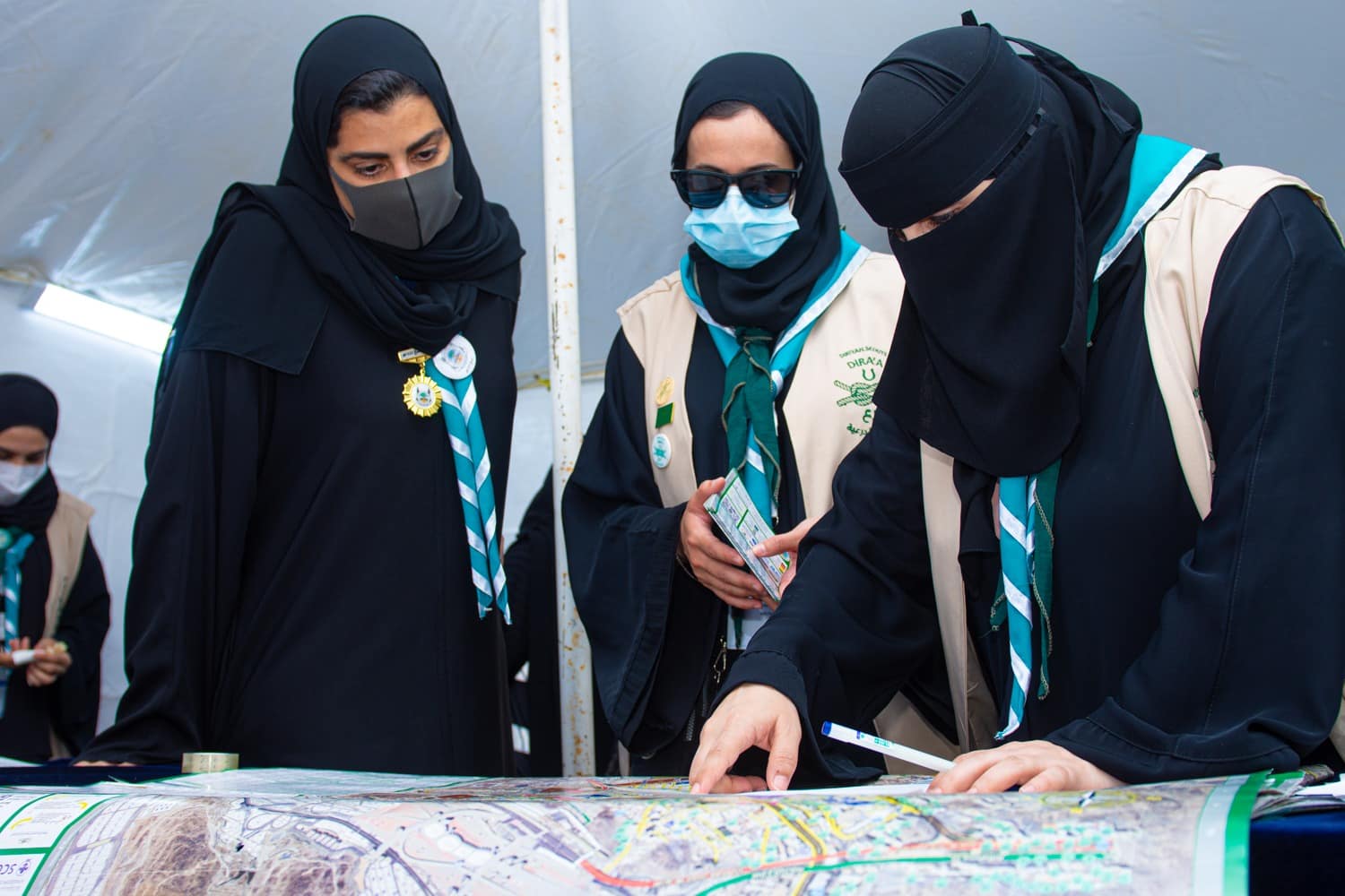 دفعت جمعية الكشافة العربية السعودية؛ بأكثر من 220 عضوة من فتيات الكشافة السعودية للمشاركة في خدمة الحجاج بالتعاون مع الأمن العام بالحرم المكي؛ ضمن اعمال معسكرات الخدمة العامة التي تقيمها الجمعية في مكة المكرمة والمدينة المنورة والمشاعر المقدسة.