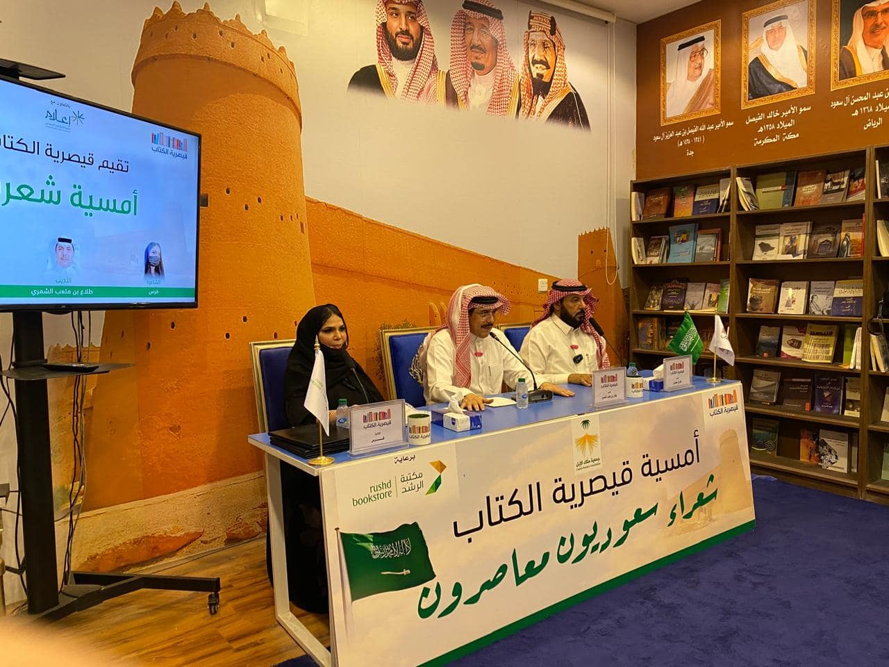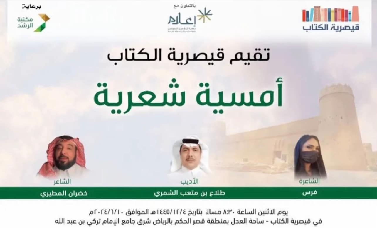 أقيمت مساء أمس الاثنين ١٤٤٥/١٢/٤ في قيصرية الكتاب بساحة العدل بالرياض أمسية شعرية و التي ترعاها مكتبة الرشد بالتعاون مع جمعية الإعلاميين السعوديين ،