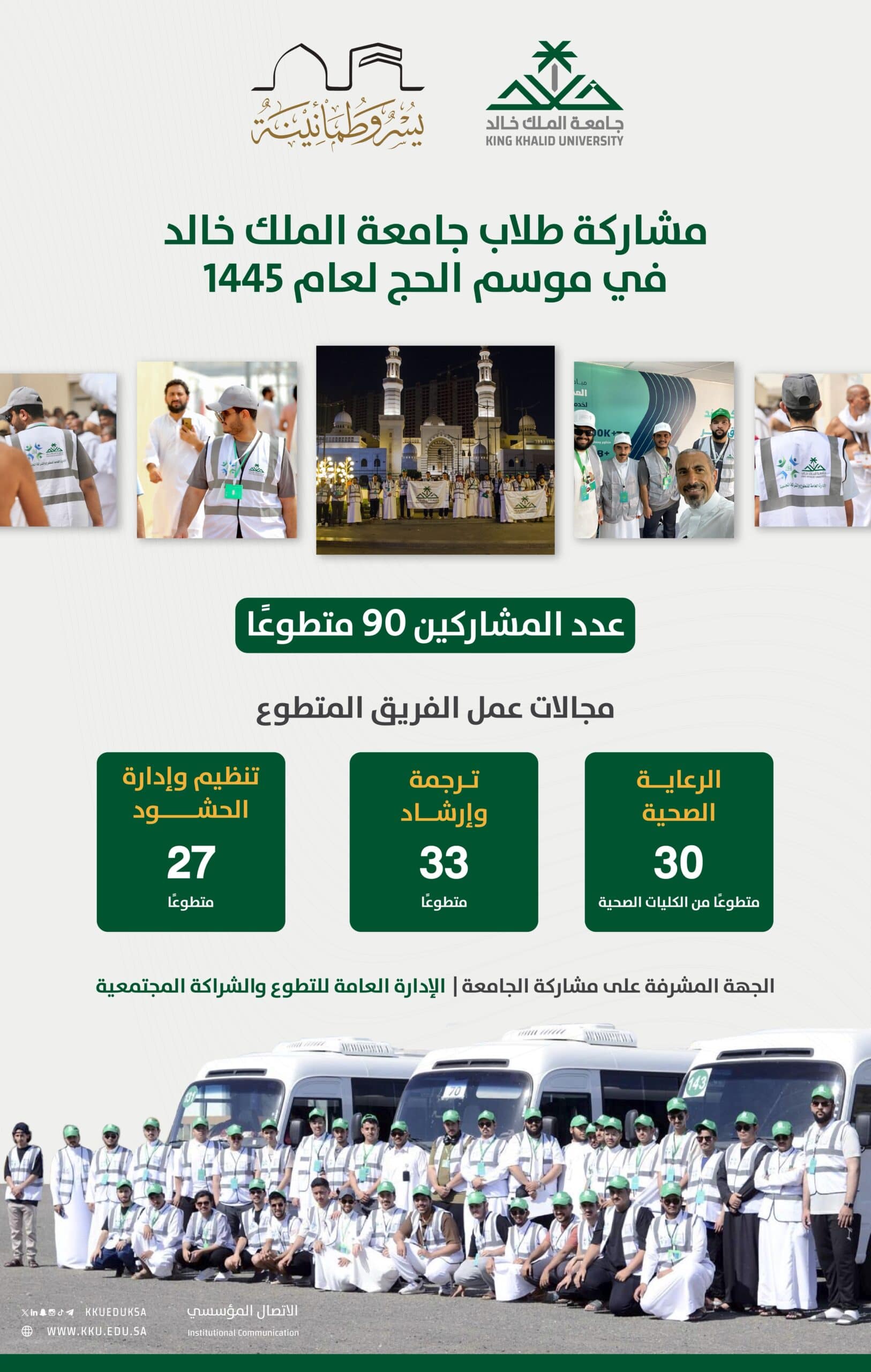 90 طالبًا من جامعة الملك خالد يشاركون في خدمة الحجاج في موسم حج عام 1445