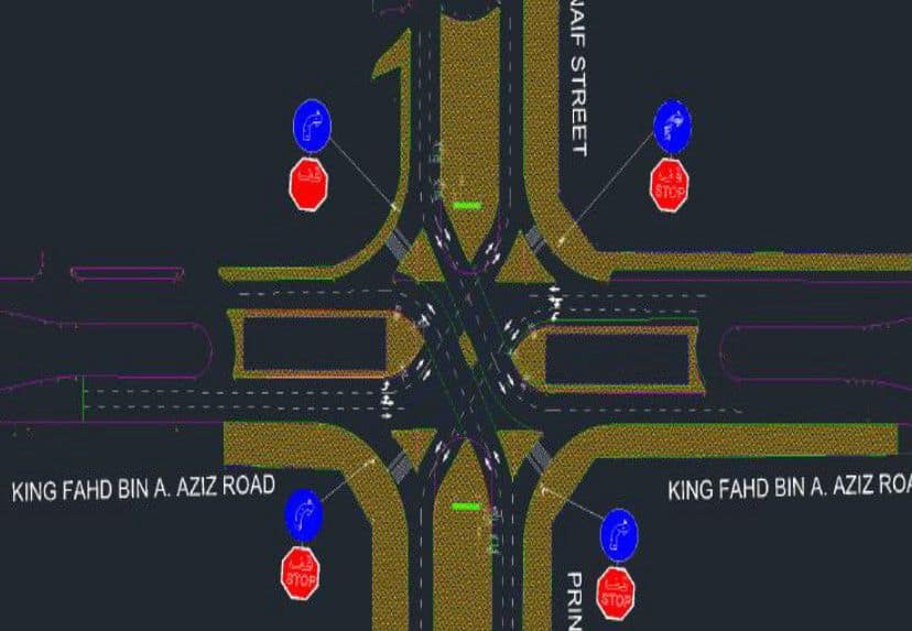 وقالت بأنه تم تحديد عدد من التقاطعات الحيوية وإلغاء الإشارات المرورية فيها واستحداث نقاط التفاف على كافة الاتجاهات، وذلك ضمن برنامج تطوير الطرق والمحاور الرئيسية، والتي من أبرزها، تقاطع طريق الملك سعود مع طريق الأمير نايف بن عبد العزيز، وتقاطع طريق الملك سعود مع طريق عمر بن عبد العزيز، وتقاطع طريق الملك سعود بن عبد العزيز مع شارع جابر بن حيان، وتقاطع طريق الملك سعود بن عبد العزيز مع طريق الخليفة عمر بن الخطاب، إضافة الى تقاطع طريق الملك عبد العزيز مع طريق الأمير نايف بن عبد العزيز، وتقاطع طريق الملك عبد العزيز مع طريق عمر بن عبد العزيز، وكذلك تقاطع الملك فهد بن عبد العزيز مع طريق الملك سعود بن عبد العزيز “القشلة”، وتقاطع شارع الخليفة أبو بكر الصديق مع الملك سعود بن عبد العزيز.