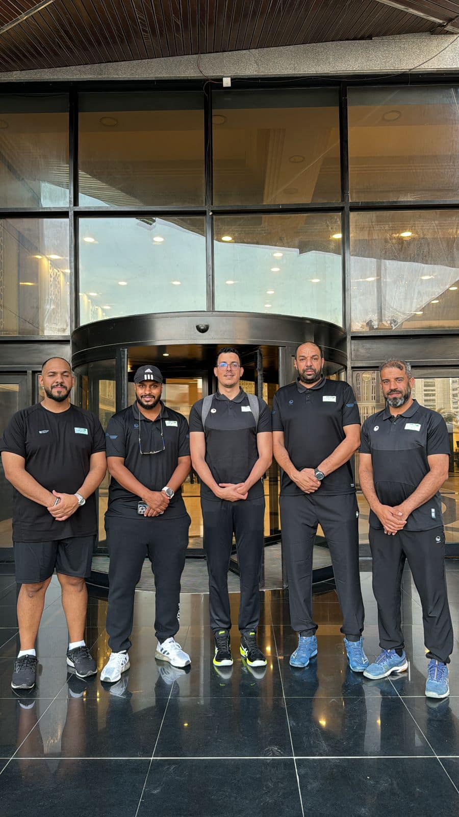 المدرب لسعد بن حمودة ومجيد ال سماعيل مساعد مدرب والإداري علي المفرفش ومحمد الرقيق معد بدني ومحمد ناصر علاج طبيعي