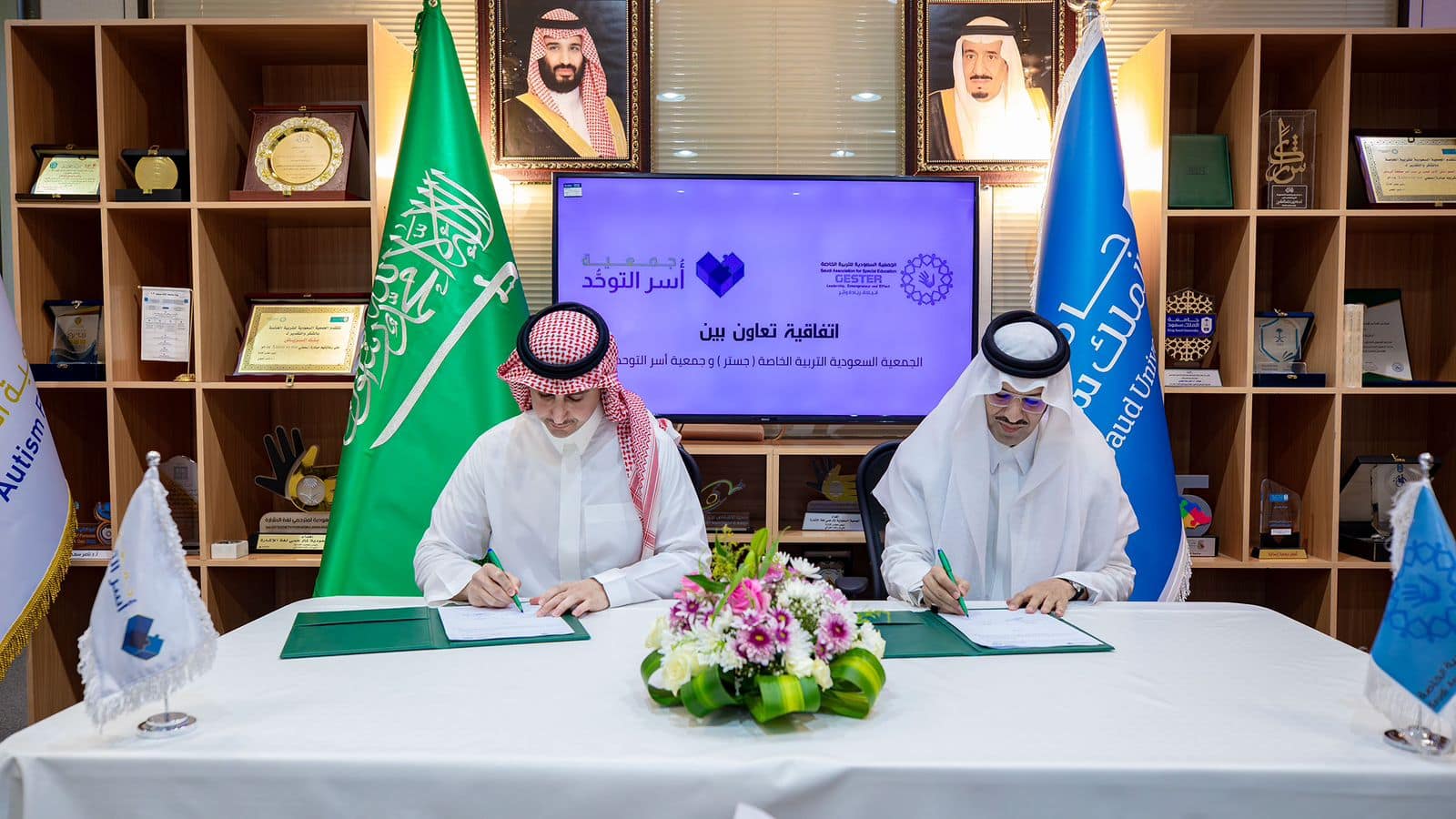 وقع مساء امس الاثنين سمو رئيس مجلس إدارة جمعية أسر التوحُّد الأمير سعود بن عبدالعزيز بن فرحان آل سعود مذكرة تفاهم مع الجمعية السعودية للتربية الخاصة ( جستر ) بوجود رئيس مجلس إدارة الجمعية الدكتور ناصر العجمي وحضور أمين عام الجمعية الأستاذة أريج المعلم .. في مقر جامعة الملك سعود بالرياض.