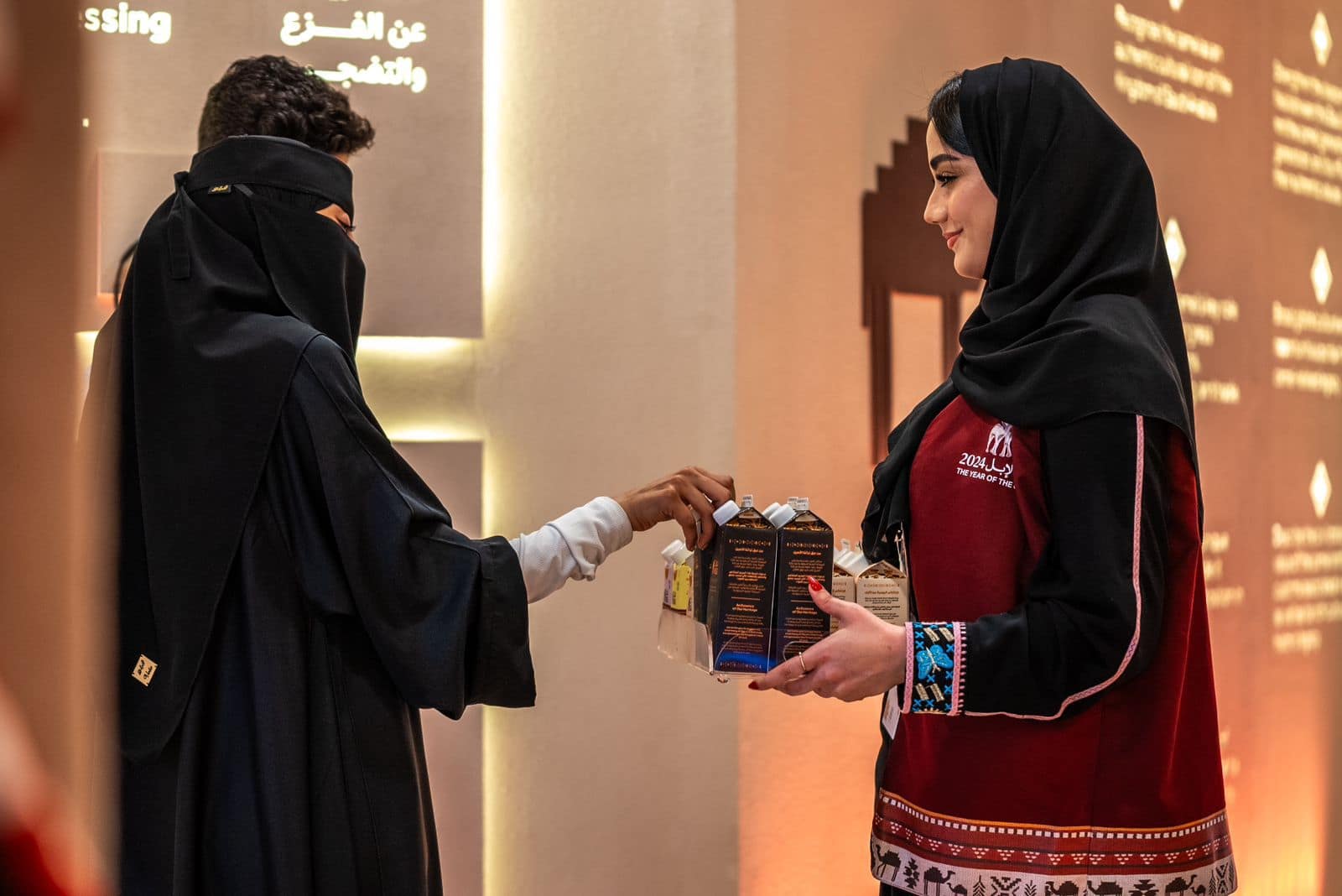 ويوفر الجناح جداريات مضيئة من الخشب والأكريليك للتعريف بسبب اختيار عام 2024 عامًا للإبل وأهداف عام الإبل باللغتين العربية والإنجليزية، كما سيستمع الزوار لتجربة صوتية استثنائية عبر السماعات تمكن الحضور من التعرف على أصوات الإبل التي تعبر عن فهم عميق للإبل التي شكلت جزءاً أساسياً من الحياة اليومية للإنسان، فأطلق على كل صوت لحن اسم خاص به وتم تداول تلك المسميات وشاعت بين الناس.