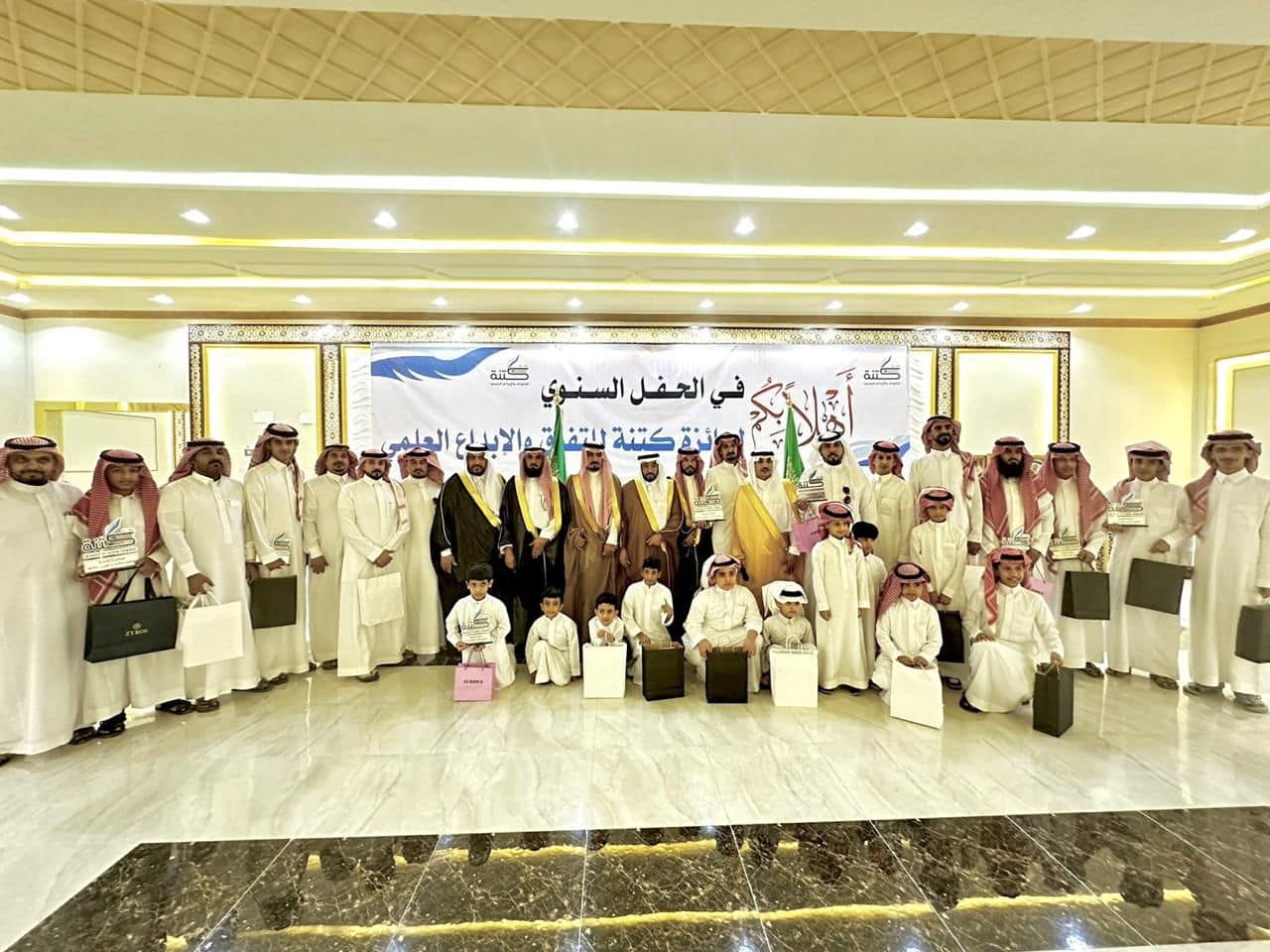 كرّمت جائزة “كتنة” للتفوق والإبداع العلمي في دورتها الحادية عشرة ٣٤ متفوقاً ومتفوقة في مختلف المراحل الدراسية، خلال الحفل الذي أقيم مساء أمس بمجلس قبيلة البلاهدة في قرية كتنة بمحافظة ميسان، بحضور شيخ قبيلة البلاهدة أهالي قرى كُتنة بني الحارث الشيخ عواض بن عايض البلاهدي الحارثي، وعدد كبير من الأهالي والمدعوين وأولياء أمور الفائزين والفائزات.