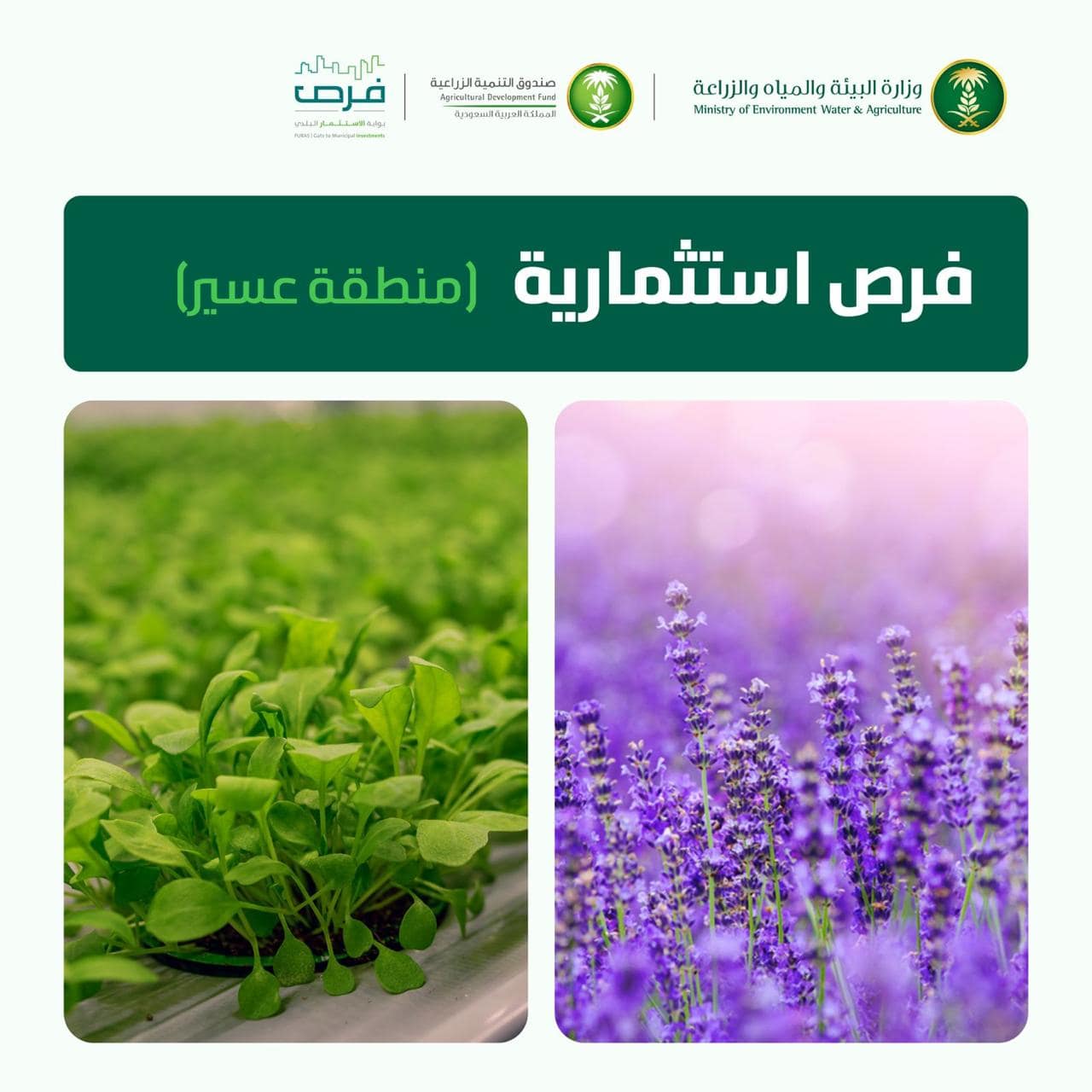 أعلنت وزارة البيئة والمياه والزراعة اليوم عن طرح فرص استثمارية جديدة تهدف إلى إنشاء بيوت محمية بنظام الزراعة الداخلية ومدينة متكاملة لزراعة اللافندر والحمضيات بمنطقة عسير.