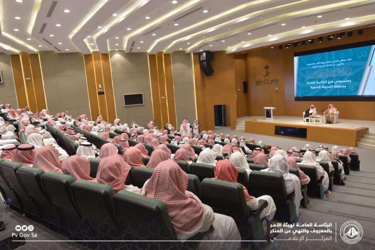 وخلال اللقاء بين معاليه أن الله جلَّ وعلا منَّ علينا بهذه البلاد المباركة التي جعلت الأمر بالمعروف والنهي عن المنكر من أولى اهتماماتها، متمسكة بقول الله تعالى ﴿الَّذينَ إِن مَكَّنّاهُم فِي الأَرضِ أَقامُوا الصَّلاةَ وَآتَوُا الزَّكاةَ وَأَمَروا بِالمَعروفِ وَنَهَوا عَنِ المُنكَرِ وَلِلَّهِ عاقِبَةُ الأُمورِ﴾ [الحج: ٤١]، وهذه دلالة واضحة على اصطفاء الله لهذه الدولة المباركة بتوفيقها للعناية بالأمر بالمعروف والنهي عن المنكر الذي فيه الخير للأمة جميعًا.