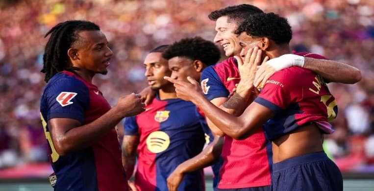 انفرد برشلونة بصدارة ترتيب الدوري الإسباني لكرة القدم، وذلك بعد فوزه الكاسح على ضيفه بلد الوليد 7 – صفر يوم السبت ضمن منافسات الجولة الرابعة بالمسابقة.
