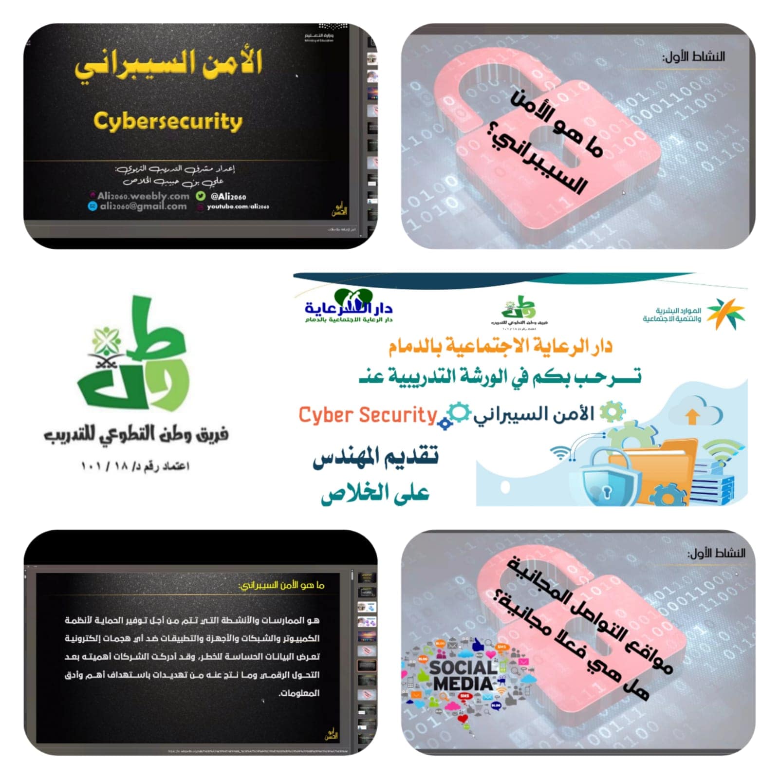 أقامت دار الرعاية الاجتماعية بالدمام التابعة لفرع وزارة الموارد البشرية والتنمية الاجتماعية بالمنطقة الشرقية ضمن “مبادرة مهارات” بالتعاون مع فريق وطن التطوعي للتدريب بمحافظة الأحساء ورشة عمل تدريبية عن بعد عبر منصة برنامج زووم بعنوان ” الأمن السيبراني” يوم السبت 28 صفر الموافق ا سبتمبر 2024م