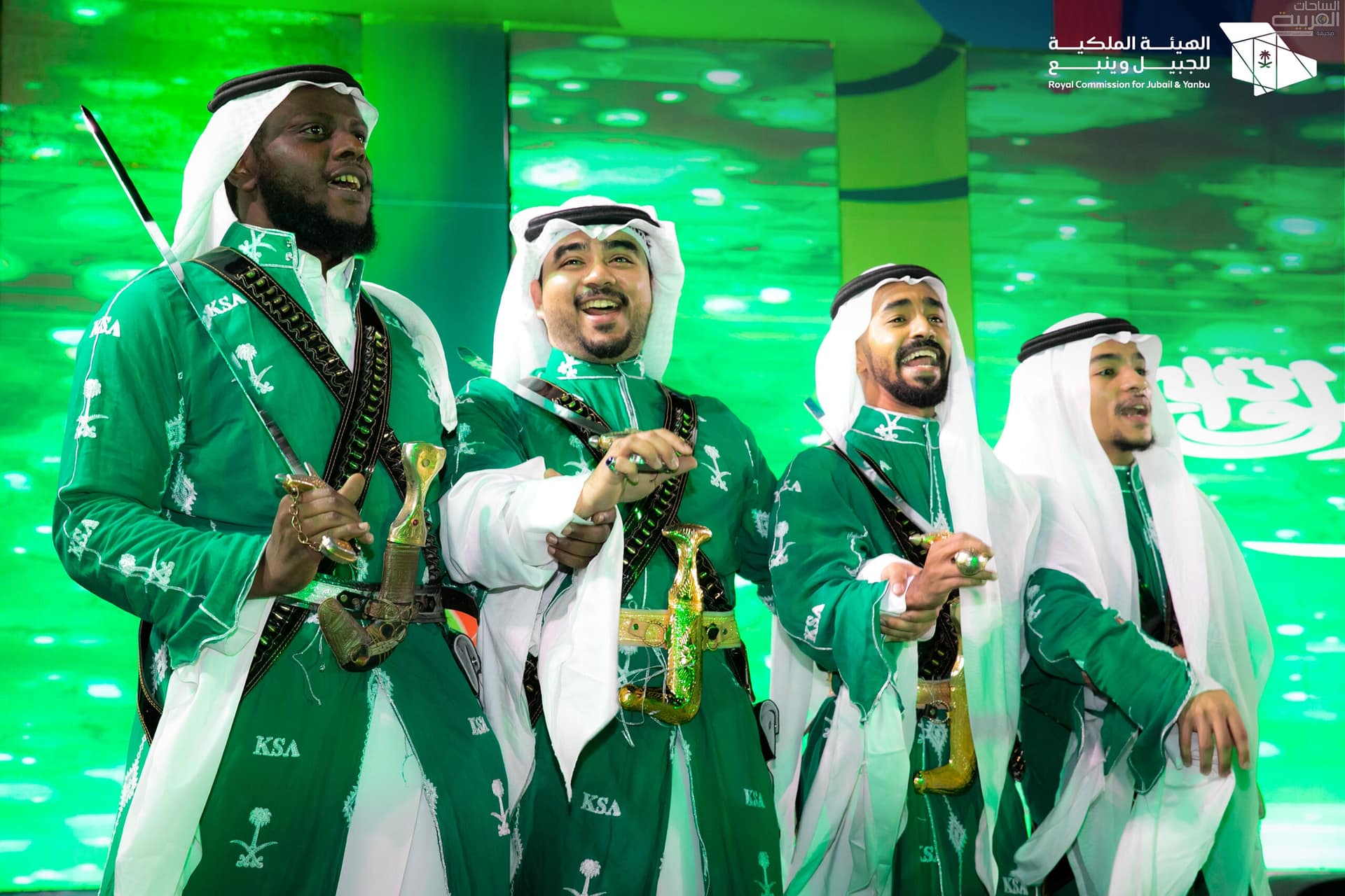وأتت هذه الاحتفالات ضمن حزمة من البرامج والفعاليات المتنوعة التي أطلقتها الهيئة الملكية بينبع على مدى ثلاثة أيام بمنطقة المسرح المفتوح بالواجهة البحرية احتفالًا بهذه المناسبة، حيث تضمنت الاحتفالات التي جرت بحضور الرئيس التنفيذي للهيئة الملكية بينبع المهندس عبدالهادي بن عبدالرحمن الجهني وعدد من مدراء العموم ومدراء الإدارات بالهيئة الملكية بينبع عروضًا حية شملت العرضة السعودية ومجموعة من الفنون الشعبية لمناطق المملكة المختلفة إضافة إلى عدد من العروض الجوالة والأزياء الوطنية، في أجواء تضفي عليها موسيقى الأغاني الوطنية مزيدا من الحماسة والاعتزاز بهذا الوطن الطموح. وقد عبر الأهالي والزوار عن فرحتهم باليوم الوطني الذي يرسخ معاني الولاء والانتماء.