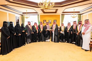وفي نهاية الاستقبال تسلم سمو نائب أمير منطقة تبوك من رئيس جمعية درع للبحث والإنقاذ والإغاثة بالمنطقة، درعًا تذكارية بهذه المناسبة.