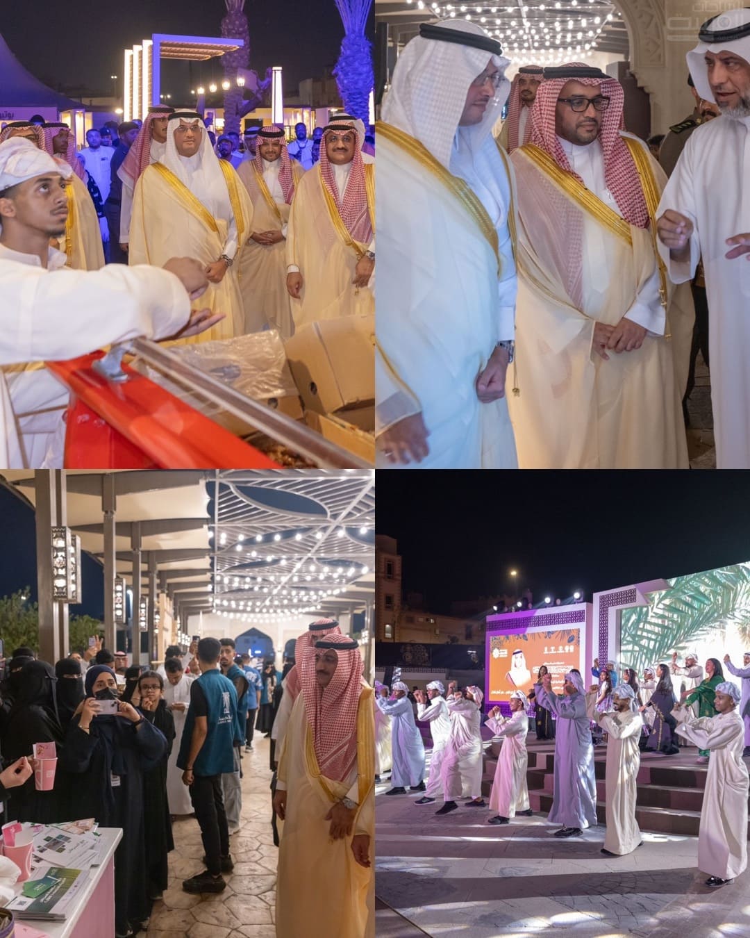 وتجول سموّه على البرامج والفعاليات المصاحبة للموسم، والأركان والأجنحة المتعددة كواحة الطفل، ومعرض الواحة، وفعالية الحكواتي، وحياة الفلاح، ومنافذ الحِرف اليدوية، وإقامة ورش عمل، وركن القهوة السعودية، وركن تفاؤل التوعوي، كما شاهد سموّه والحضور لوحات غنائية تراثية وعروض الفلكورات الشعبية واستعراضات لفن البستة، والمعزوفات الموسيقية.