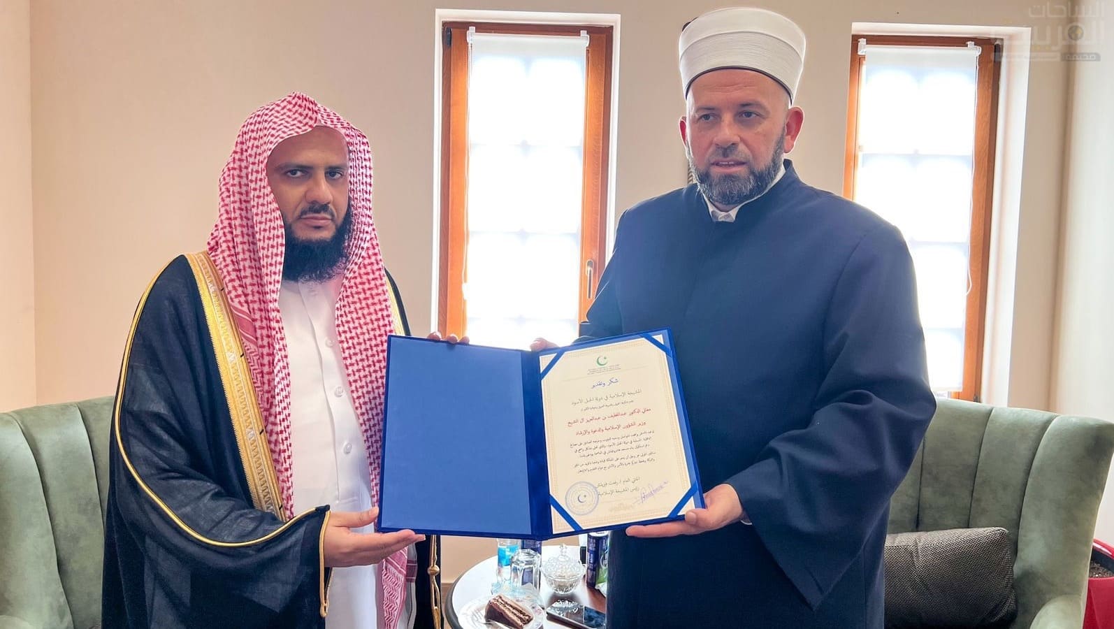 سلمت المشيخة الإسلامية في الجبل الأسود إمام المسجد النبوي رسالة شكر وتقدير لوزير الشؤون الإسلامية السعودي تسلم إمام وخطيب المسجد النبوي، الشيخ الدكتور خالد بن سليمان المهنا، يوم أمس السبت، من رئيس المشيخة الإسلامية والمفتي العام لجمهورية الجبل الأسود، الشيخ رفعت فيزتش، رسالة شكر وتقدير من المشيخة الإسلامية في الجبل الأسود لمعالي وزير الشؤون الإسلامية والدعوة والإرشاد، الشيخ الدكتور عبداللطيف بن عبدالعزيز آل الشيخ.