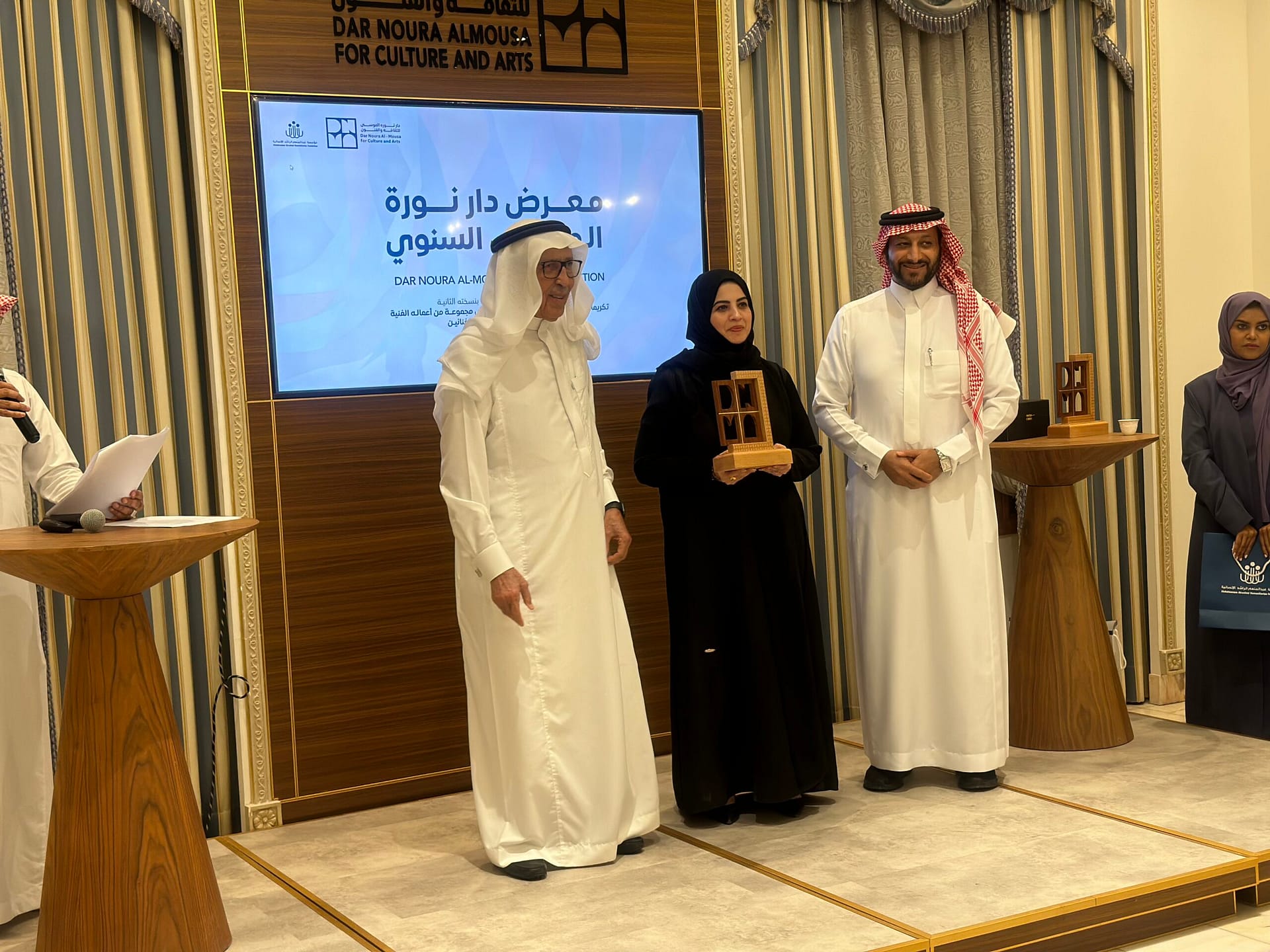 افتتح الشيخ عبدالعزيز بن سليمان العفالق معرض دار نورة الموسى السنوي بنسخته الثانية وبرعاية من مؤسسة عبدالمنعم الراشد الانسانية ويأتي المعرض هذا العام تخليدا لذكرى الفنان التشكيلي الراحل محمد الصندل