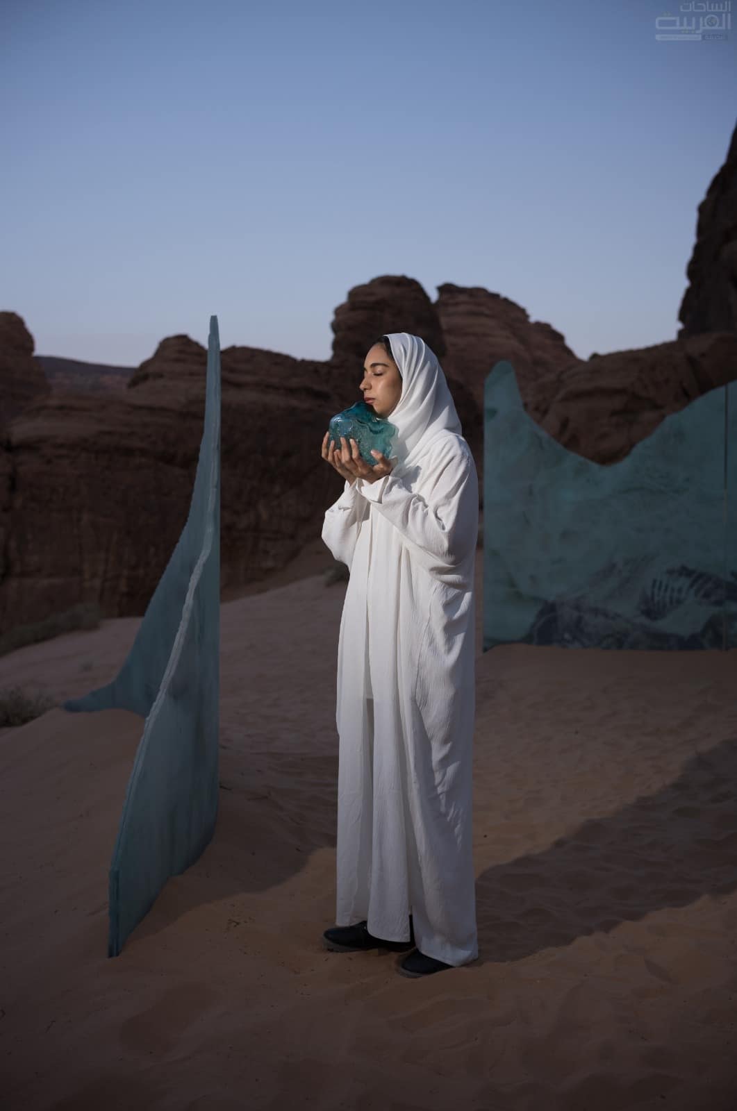 يُعرض العمل في موقعين مميزين بالعلا؛ حيث تتكون المنشأة في وادي النعام من خمسة عشر لوحًا زجاجيًا مذهلاً يخترق رمال الصحراء، بينما تعكس المنحوتات الزجاجية المصنوعة يدويًا جيولوجيا المنطقة في موقع دار الطنطورة.