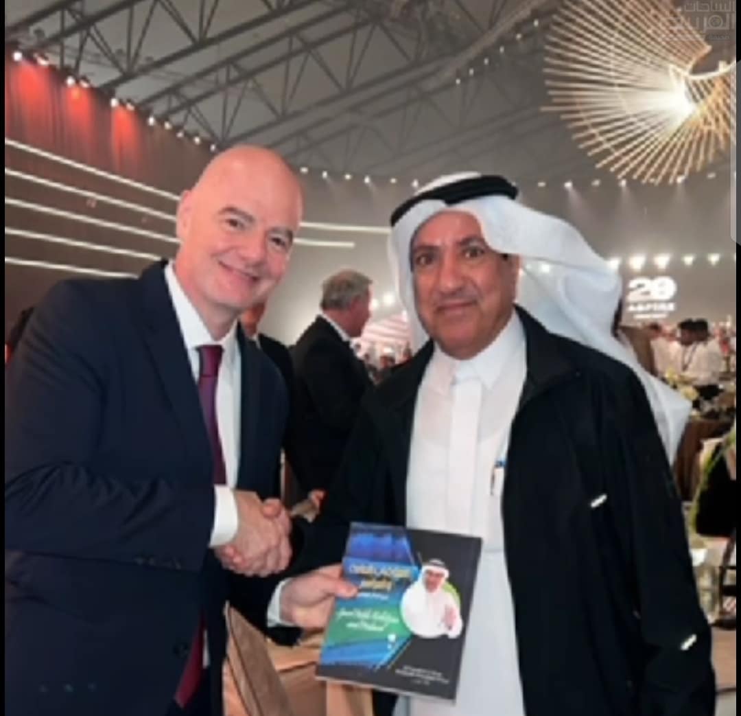 اهدى المستشار عبدالله بن عبدالرحمن الدايل كتابة بعنوان ( العلاقات العامة والمراسم في المجال الرياضي ) للسيد جياني رئيس الفيفا.