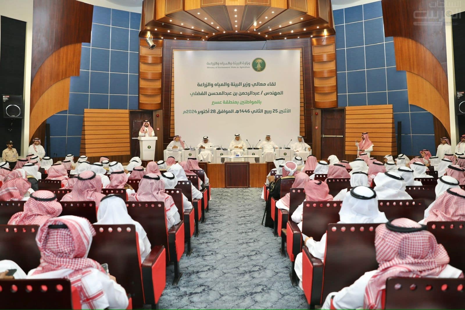 التقى معالي وزير البيئة والمياه والزراعة المهندس عبد الرحمن بن عبد المحسن الفضلي، بعددٍ من المواطنين والمزارعين والمستثمرين في منطقة عسير؛ لتلمُّس احتياجاتهم حيال الخدمات التي تقدمها الوزارة، والاستماع إلى استفساراتهم، تجاه المشاريع التي تشرف عليها، منوهًا بالدعم اللامحدود الذي تقدمه القيادة الرشيدة -أيدها الله-، لقطاعات منظومة البيئة والمياه والزراعة في المنطقة.